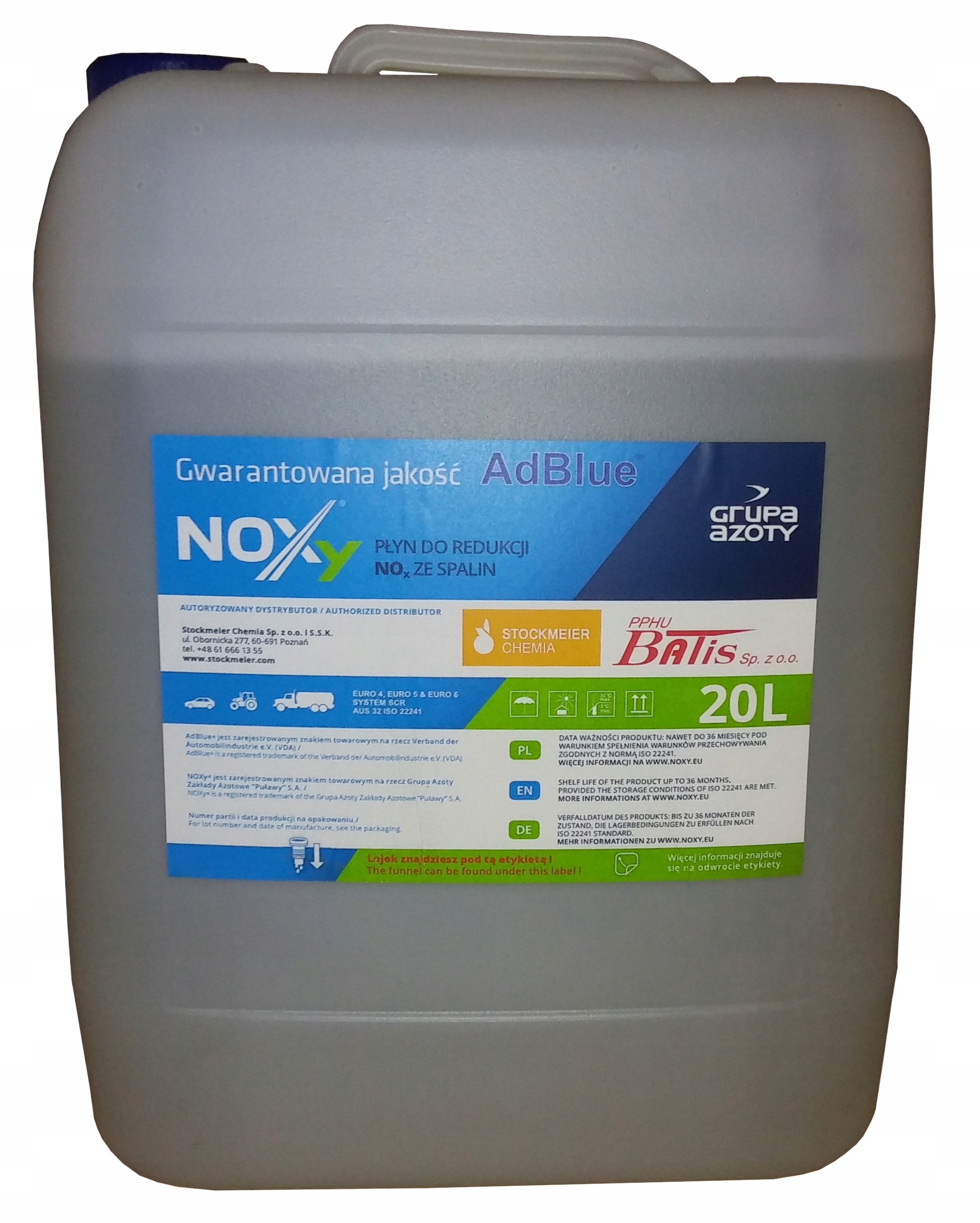 Оплачивая «NOXy Ad Blue ADBLUE DPF 20L», вы можете быть уверены, что данное изделие из каталога «AdBlue» будет доставлено из Польши и проверено на целостность. В цене товара, указанной на сайте, учтена доставка из Польши. Внимание!!! Товары для Евросоюза, согласно законодательству стран Евросоюза, могут отличаться упаковкой или наполнением.
