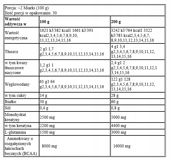 Склад: мальтодекстрин, протеїн комплекс [протеїновий концентрат сироватковий порошок WPC80 (з молока), пахта, ізолят сироваткового протеїну (з молока), гідролізат концентрату сироваткового протеїну (з молока), міцелярний казеїн (з молоко )], какао (1), креатин моногідрат, L-глютамін, загущувач (ксантанова камедь), концентрат бурякового соку (7,10,12), ароматизатори (1,2,3,4, 5,6 ,7,8,9,10,11,12,14,16), ароматизатор(13,15), колір(и) (E150c(2,3,9), E160a(3,4,11) , E163(10) )), какао (14,15), розчинна кава (16), підсолоджувач (сукралоза).