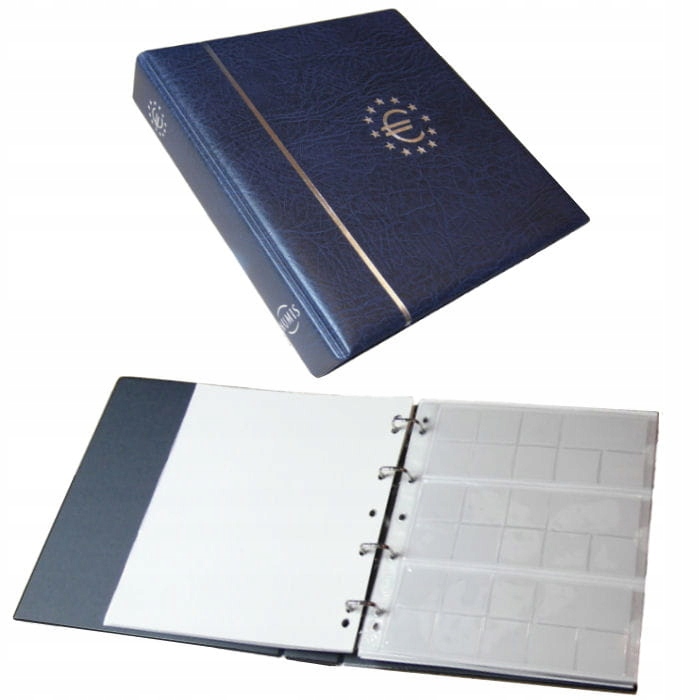 - кожна картка розділена на 3 частини та забезпечує місце для монет із 3 країн єврозони. Монети розміщується в бічній висувній планці. На барі 8 вікон Монети 28х30 мм і віконце для прапорця або етикетки. картка призначений для наступних номіналів: 1,2,5,10,20,50 центів і 1,2 євро,