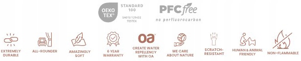Колекція має хороші параметри міцності. До них відноситься стійкість до стирання 50 000 циклів (тест Мартіндейла), що подовжує термін служби тканини. Також матеріал не містить шкідливих речовин, що підтверджено сертифікатом OEKO-TEX.