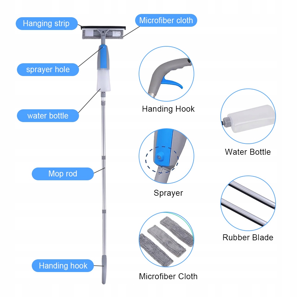 засіб для миття вікон має пляшку на голівці, ви можете налити в пляшку воду або миючий засіб і натиснути кнопку на ручці