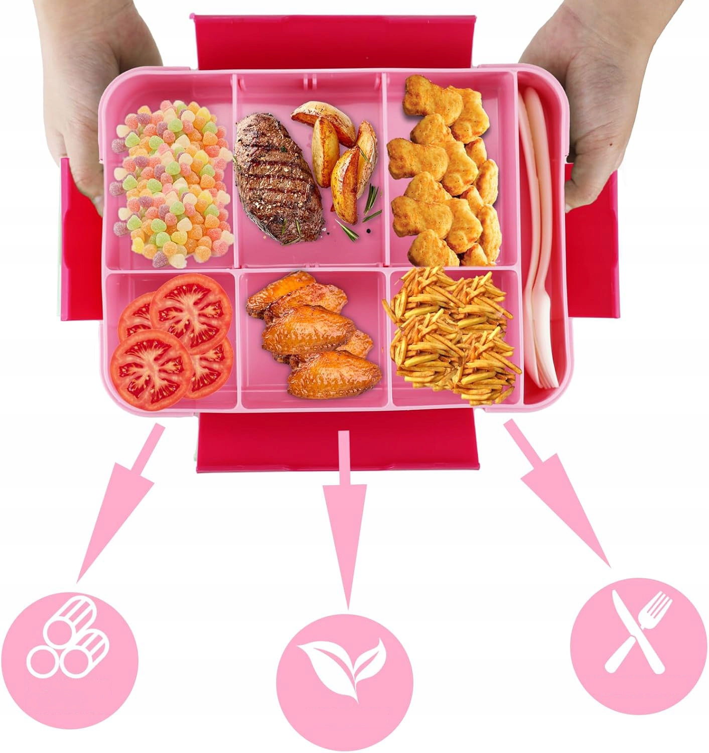 обідня контейнер для дошкільнят має 5 відділень, в яких можна розділити основне блюдо, фрукти, закуски, салат, сендвіч і соус.