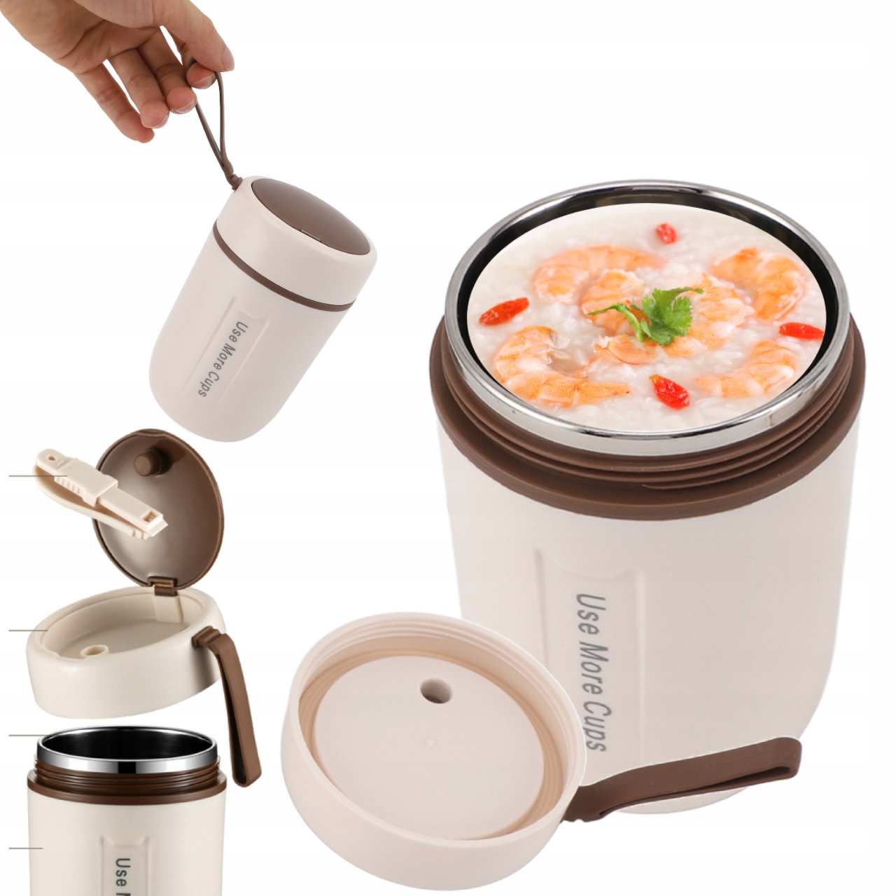✴️Ізоляційна банка для їжі на 600 мл із безпечною кришкою та ложкою, герметична термокружка з нержавіючої сталі 304 для хлопчиків і дівчаток✴️. ОБІДНИЙ ТЕРМОС ДЛЯ СУПУ FOOD ЛАНЧБОКС 600МЛ БЕЖЕВИЙ