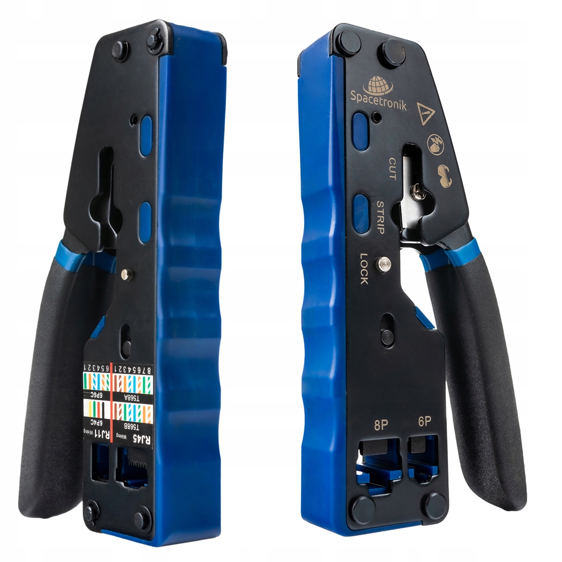 Це високоякісний багатофункціональний інструмент дозволяє точно обтискати закінчення роз'ємів RJ-11, RJ-12 і RJ-45. Завдяки встановленому твердому лезу Spacetronik NT-CT03 також дозволяє знімати ізоляцію з кабелю та самого себе різання. Ручка проти ковзання забезпечує міцне захоплення, комфорт і безпеку під час роботи. Функція блокування захистить інструмент від небажаного відкриття. Завдяки своїй простоті та багатофункціональності він виправдає очікування любителів, професійні монтажники та професіонали.