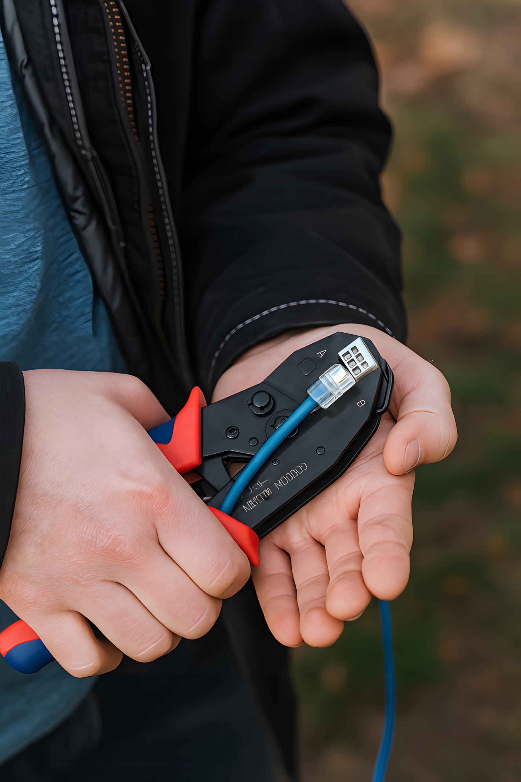 Містить 600 елементів найякісніших кабельних роз’ємів і ергономічний обтиск із тріскачкою, завдяки які ви можете зробити міцні та безпечні з’єднання всього за кілька секунд.