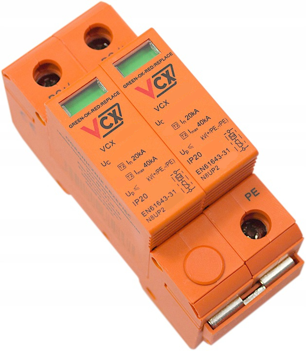 Модульні розрядникиVCX-C L1 класу T2 призначені для захисту установок низьковольтного джерела живлення від впливу індукованих і комутаційних перенапруг. Їх слід встановлювати як другий рівень захисту в підлогових щитах і допоміжних щитах. Розрядники повинні бути встановлені в місцях входу електроустановки в будівлю. У будівлях без системи блискавкозахисту і з підключенням кабельної лінії цей тип розрядників забезпечує достатній захист, без необхідності встановлення розрядників класу Т1.Вони оснащені візуальним індикатором спрацювання (зелений - захист, червоний - захист відсутній).