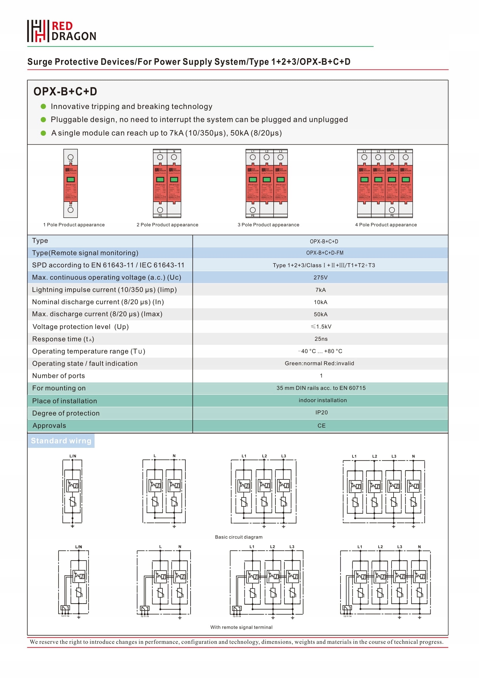 Довіртеся нашому 4-контактному розряднику перенапруги OPX B+C+D і насолоджуйтесь спокоєм, знаючи, що ваші установки належним чином захищені. Ми пропонуємо не тільки ефективні рішення, але й професійну підтримку та відмінну якість. Виберіть наш обмежувач і забезпечте максимальний захист своїх пристроїв.