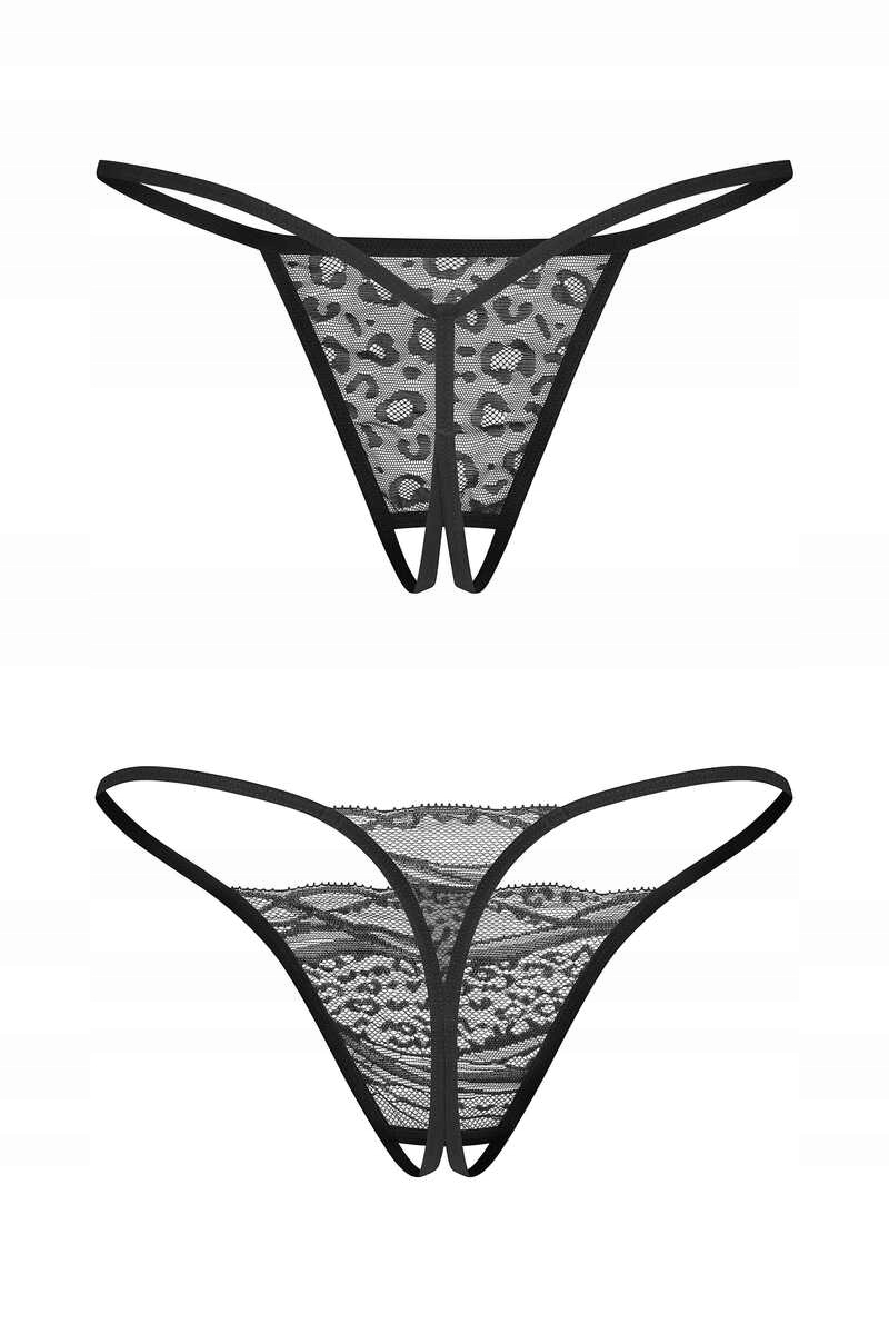 Obsessive Panties thong Open Lace Leopard Bianca black 2-pack S/M