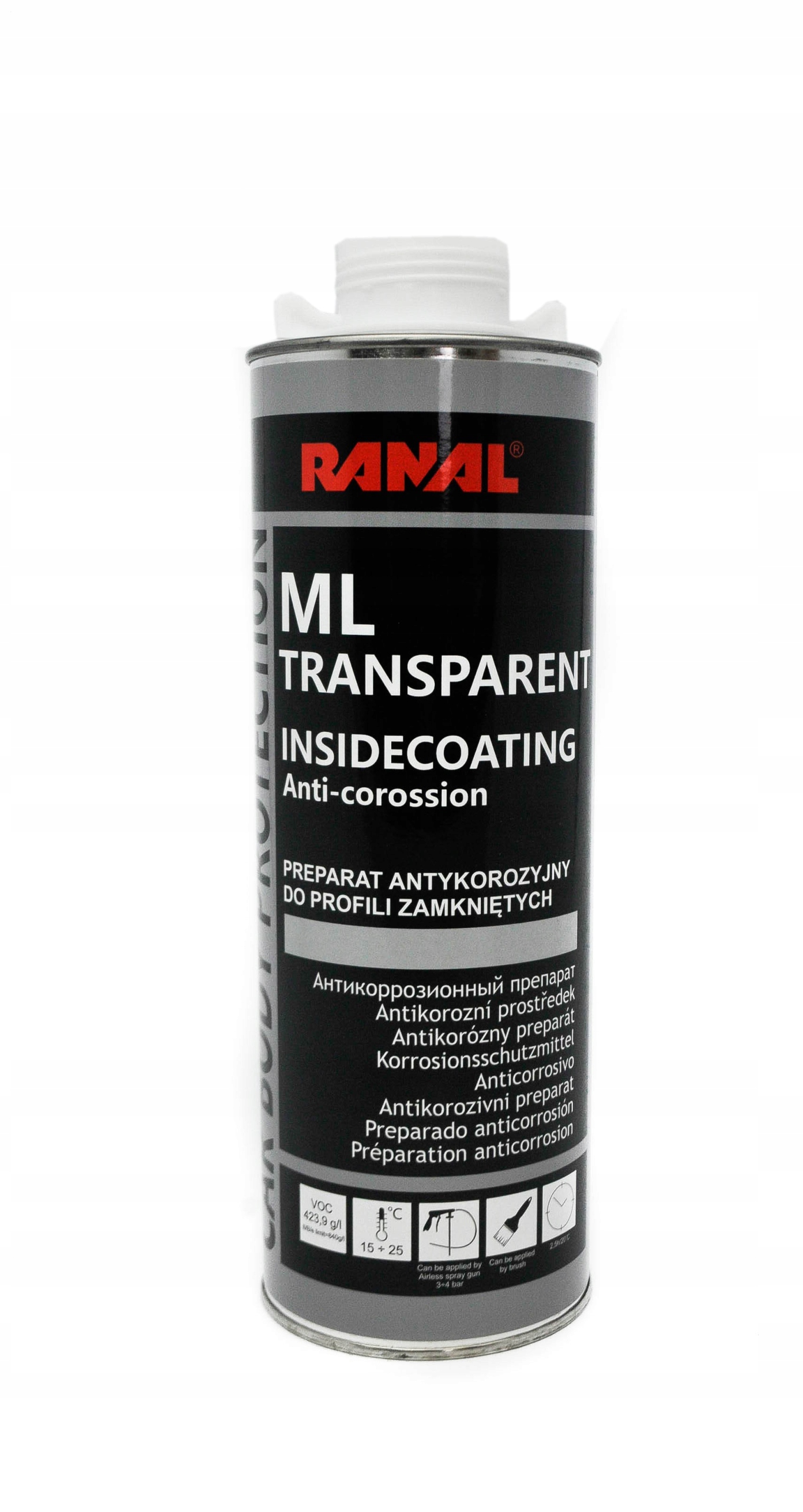 ML TRANSPARENT особливо добре працює для захисту закритих профілів, дверей, порогів, стійок і капотів в автомобілях. Це пояснюється тим, що він ефективно витісняє воду та вологу та має чудові проникаючі властивості. Завдяки використанню відповідних інгредієнтів створює міцне, гнучке та щільне покриття, яке захищає не лише від води та вологи, а й від солі. ML TRANSPARENT - антикорозійний препарат, який швидко висихає за рахунок випаровування розчинника.