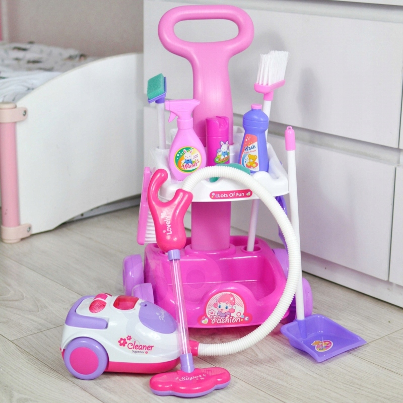 - Прибиральний набір від авторитетної марки Woopie - ідеальна ідея подарунка для маленької дівчинки. Цей високопрофесійний набір - це відображення реального обладнання для дорослих для очищення. Рожево -біла коляска оснащена додатковими аксесуарами, щоб дитина могла допомогти батькам прибирати. Вакуумний очищувач оснащений комутатором/комутатором та сигналізацією лампи. Гра в чистку з раннього віку може бути чудовим способом навчитися піклуватися про чистоту. Малюки люблять імітувати дорослих. З таким набором це буде набагато простіше!