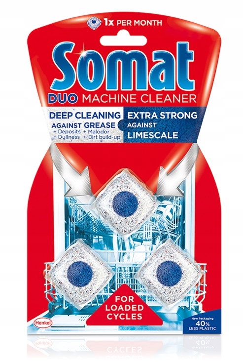 очищувач дует -машини сомати - це перший і єдиний сомат, який використовується під час промивання посуду разом з планшетом або гель для миття посуду. Ефективно видаляє жир і лімцикл із камери посудомийної машини, очищає її форсунки та фільтри.