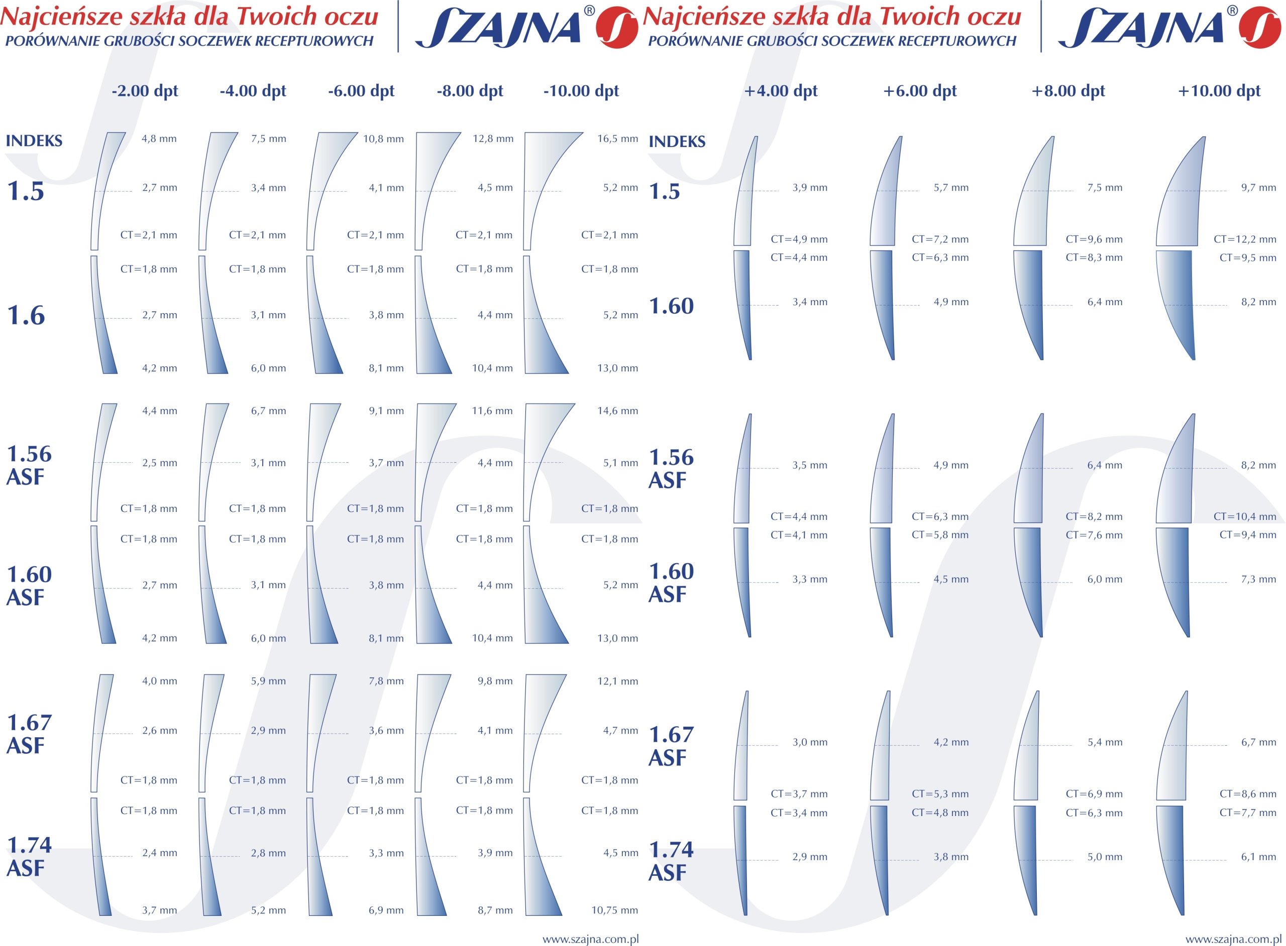 - діапазон потужності: sph. від +2.00 dpt до - 4.00 dpt - можливість виготовлення лінз з іншою силою