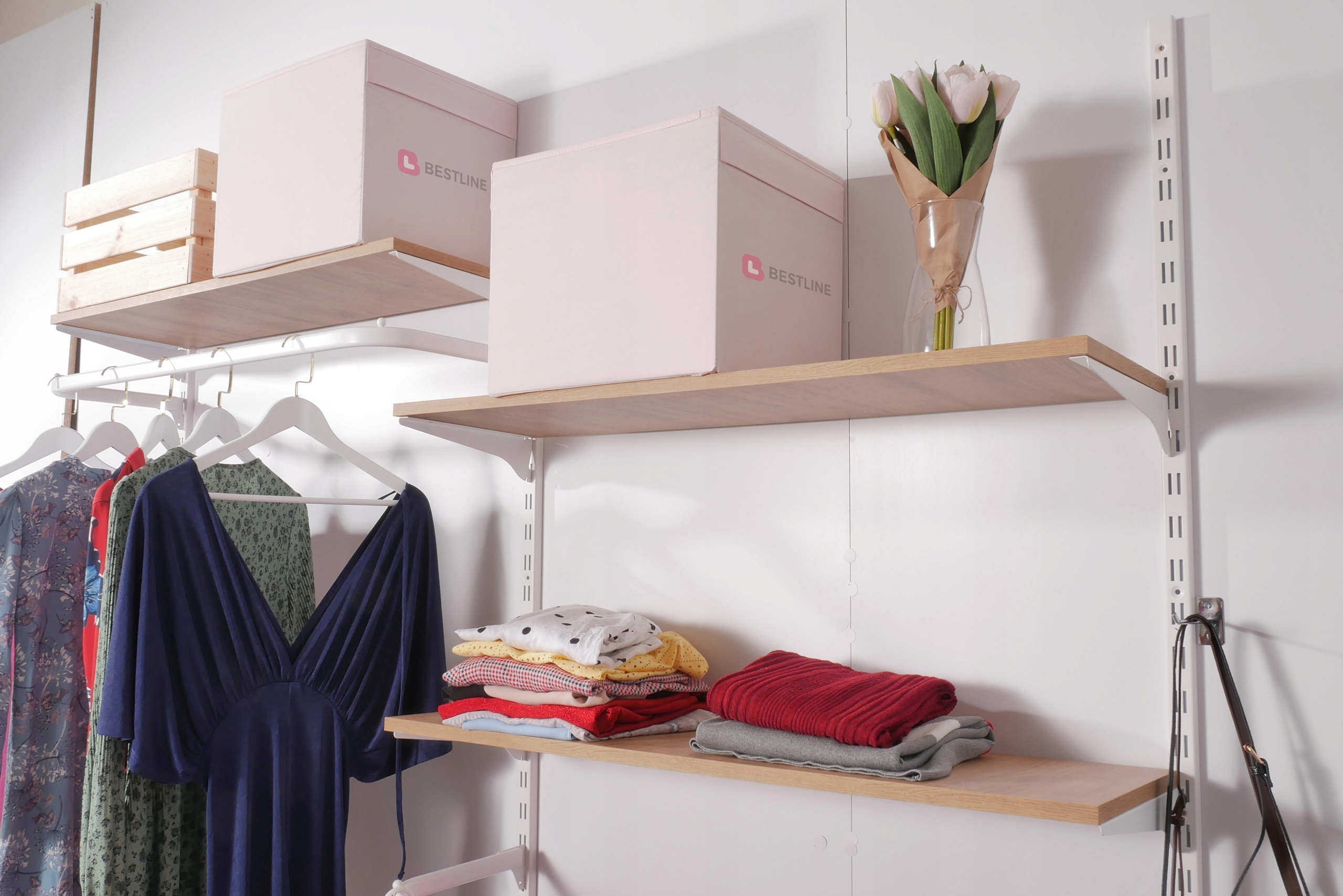 - Рейки, прикріплені до стіни , забезпечують стабільну основу для полиць, вішалки та інших аксесуарів. Важливо, щоб структура була довговічною і стійкою до навантажень. Варто пам’ятати, що незалежно від застосування настінні рейки повинні бути належним чином прикріплені до стіни , щоб уникнути потенційних проблем із безпекою. 4 Усі інші елементи, такі як вішалки, кросби, вішалки для одягу або кронштейни полиці, встановлюються шляхом підключення їх до перфорацій , які розташовані по всій довжині рейок. Нам не потрібні жодних інструментів для цього, щоб ви могли внести будь -які зміни в систему в будь -який час .
