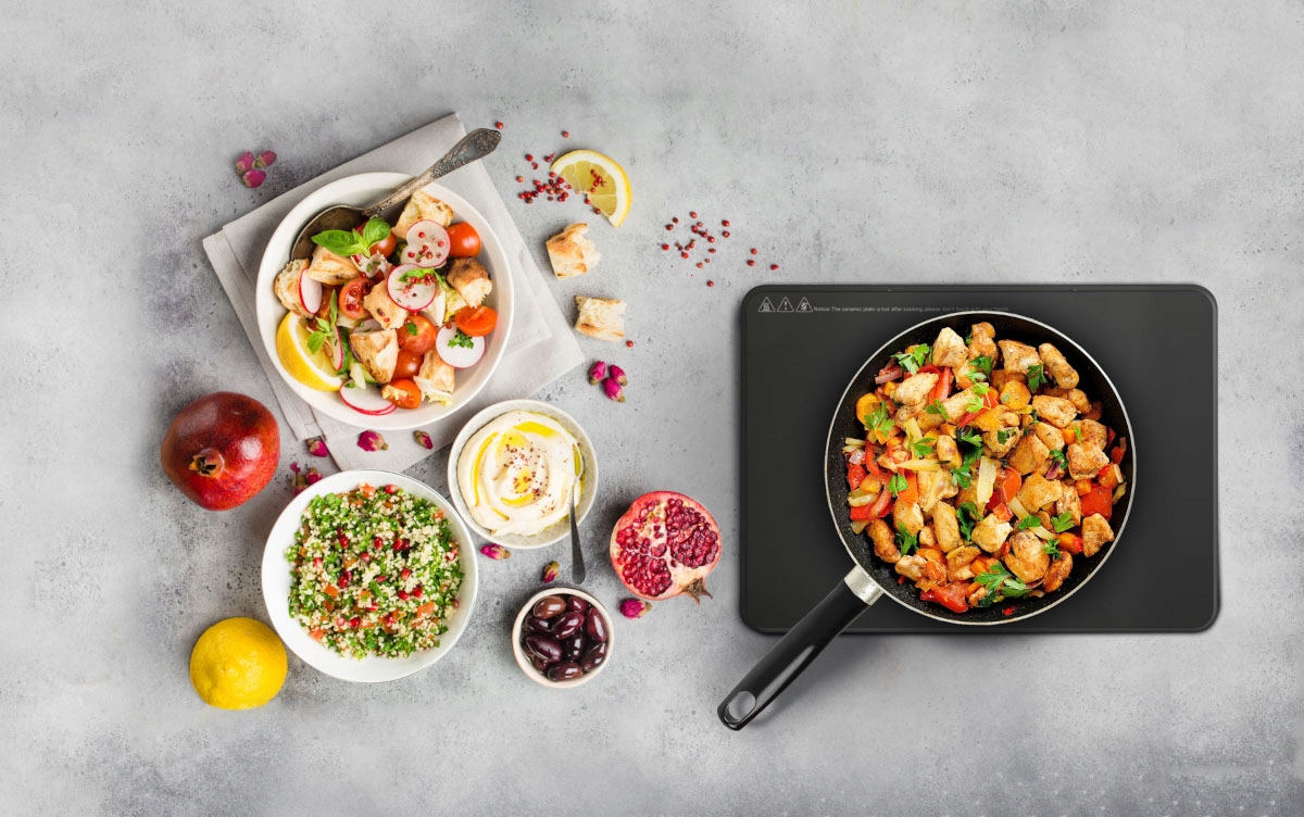- Ідеально підходить для використання зовні та на кемпінгу, завдяки зоні приготування з 9 рівнем потужності (від 300 до 2000 Вт), вибраним за допомогою сенсорного управління та світлодіодного дисплея