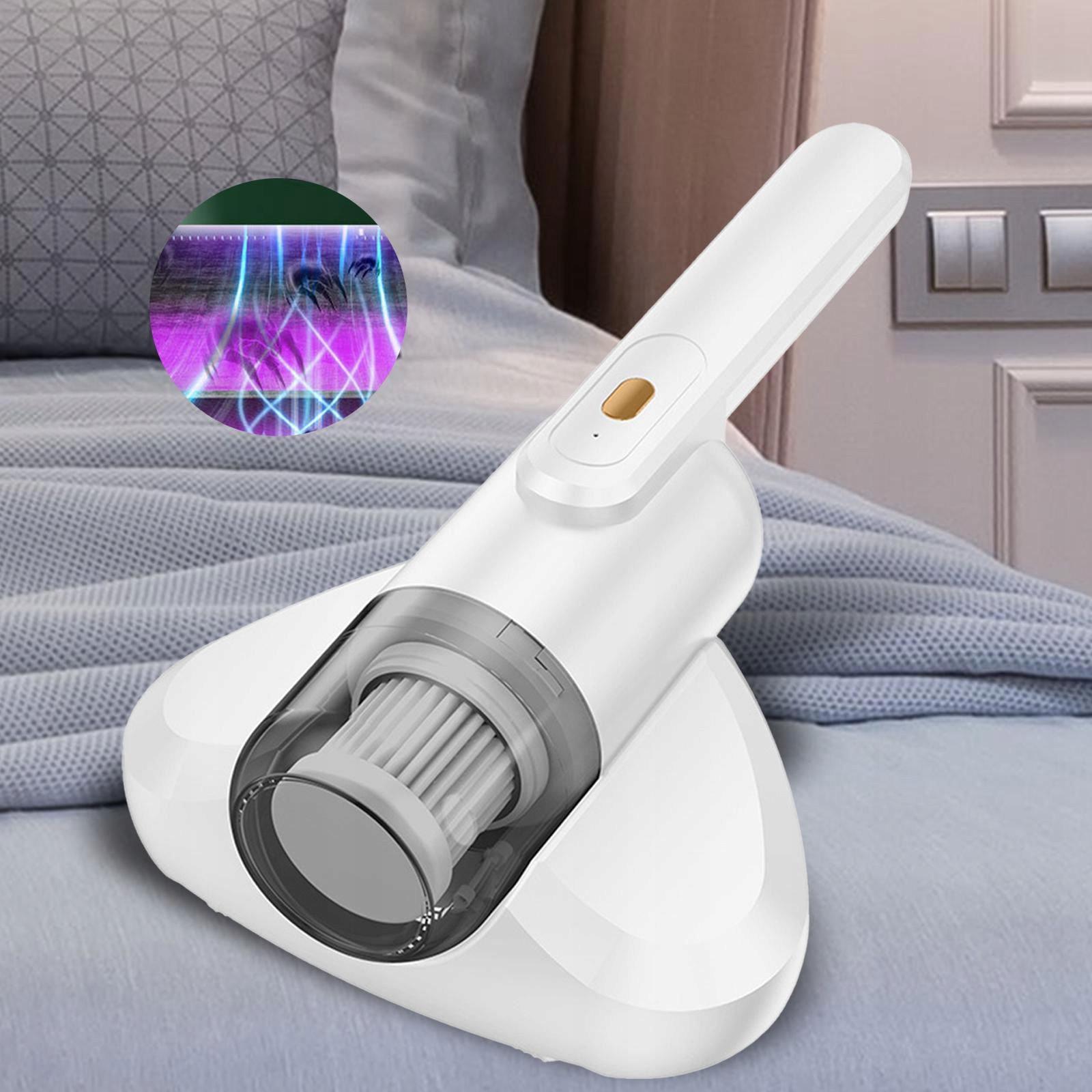 Odkurzacz do usuwania roztoczy Maszyna do czyszczenia sofy Domowy materac łóżkowy bezprzewodowy, biały
