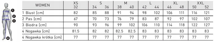 - свобода рухів - необмежена свобода рухів завдяки використанню технології безшовного та тривимірного в'язання, а також завдяки високоеластичним матеріалам,