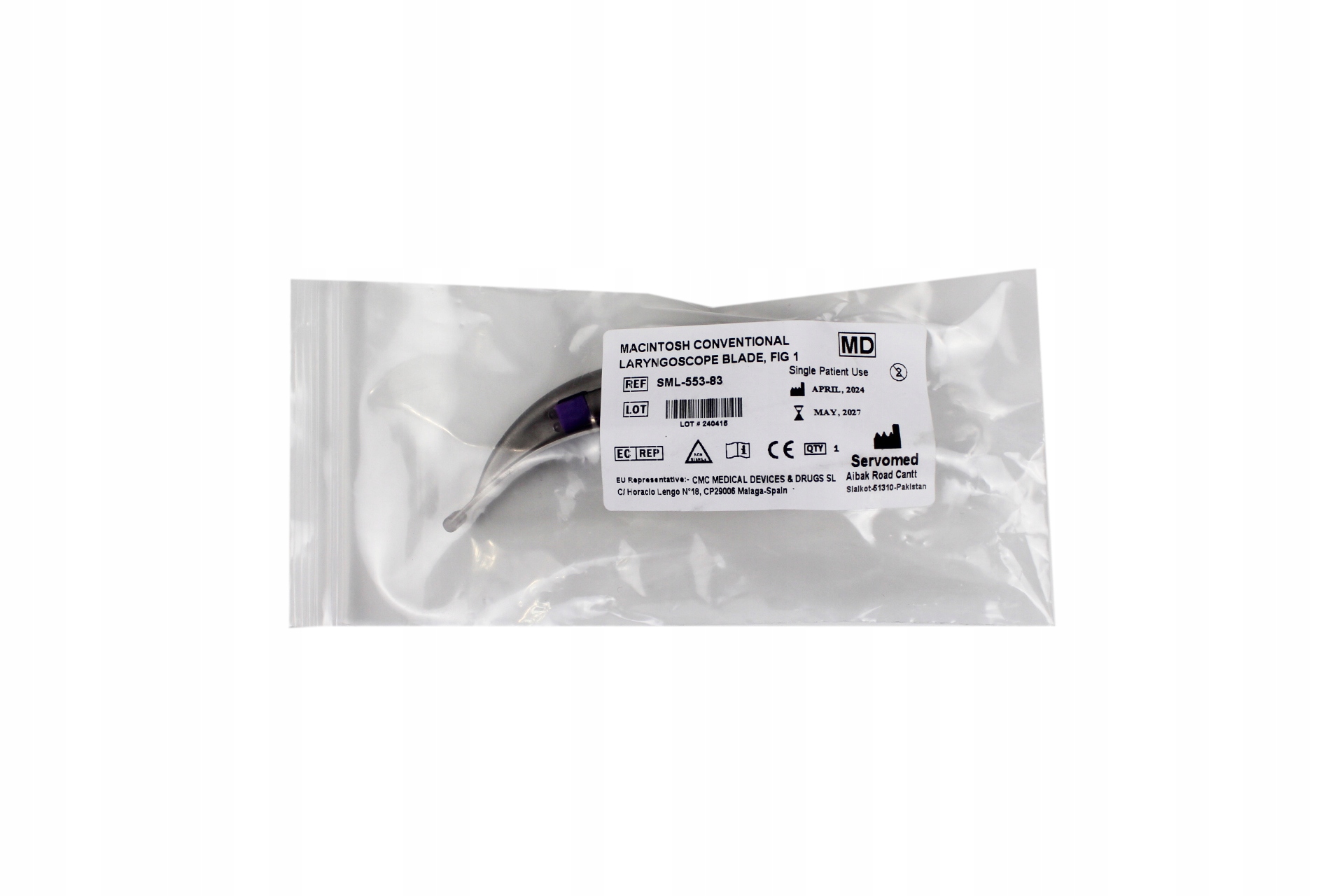 SERVOMED SML-553-83 - це одноразовий клинок ларингоскопа з металевою конструкцією, з вбудованим світлодіодним підсвічуванням, призначений для точної інтубації. Завдяки металевій конструкції та ефективному світлодіодному освітленню ложка забезпечує високу видимість і точність під час інтубації.