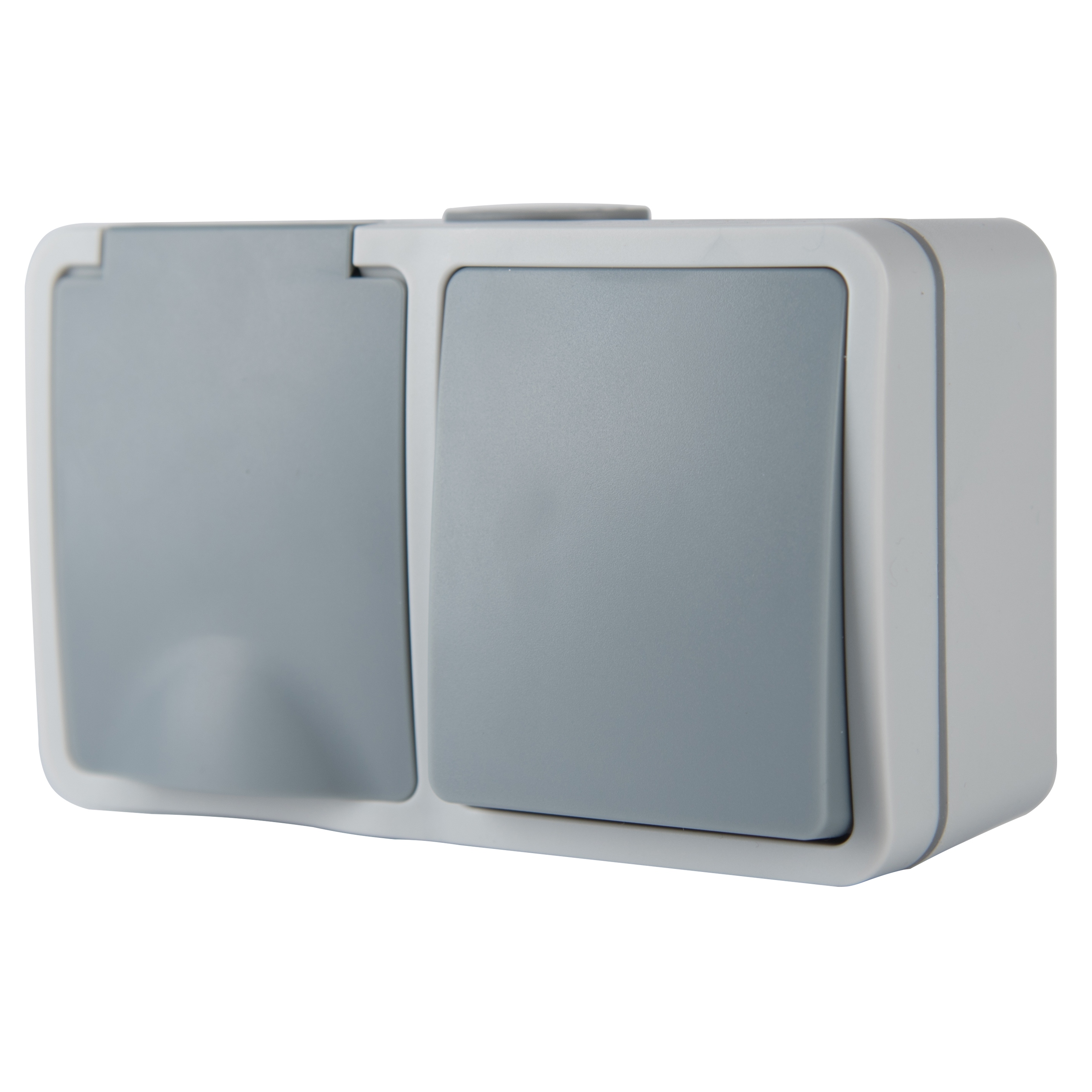 Одноразовий перемикач сходів + розетка з промисловим поверхневим клаптям IP54