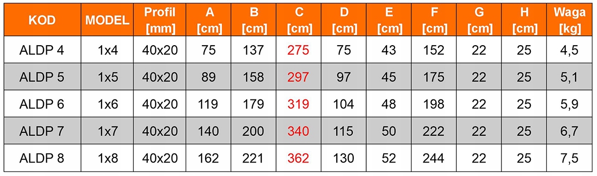 - Алюмінієвий профіль кришки: 40 мм х 20 мм