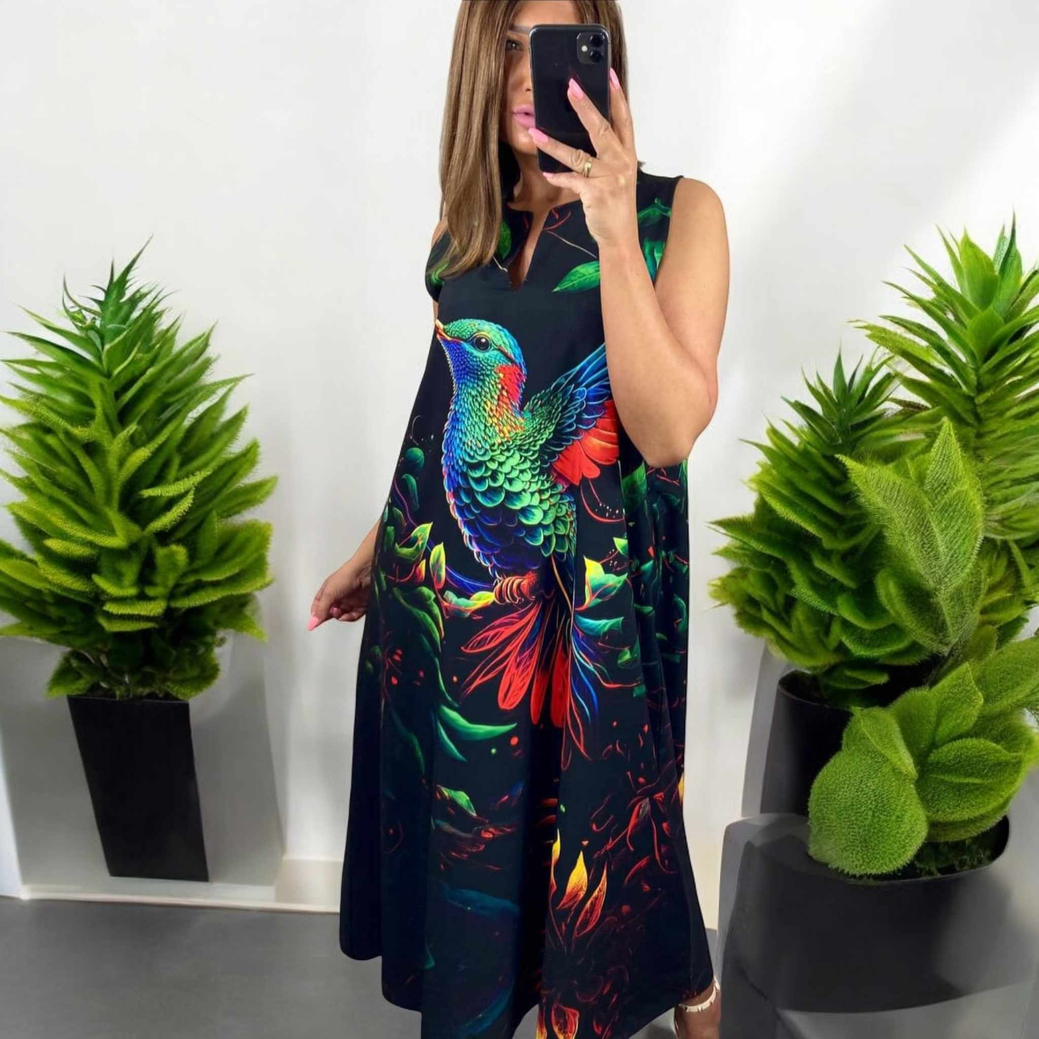 Довга чорна сукня з чарівним колібром - ідеально підходить для будь -якого випадку!