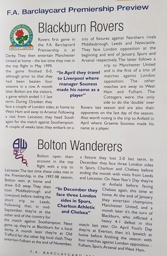 Description: Official guide prepared on the occasion сезону 2001/2002 англійською мовою F.A. Barclaycard Premierth. Редактори підготували детальні описи всіх команд, які беруть участь у змаганнях, включаючи Manchester United, Chelsea, Ipswich, Liverpool, Newcastle United, Tottenham та Arsenal. Опис команд включає короткий підсумок здійснених переказів, композицію для сезону 2001/2002, інформацію про найбільші успіхи, приблизний графік, інформацію про те, як подорожувати на стадіон, паркувальні ділянки, список цін на квитки тощо. Інформатор багато проілюстровано барвистими фотографіями та графікою.