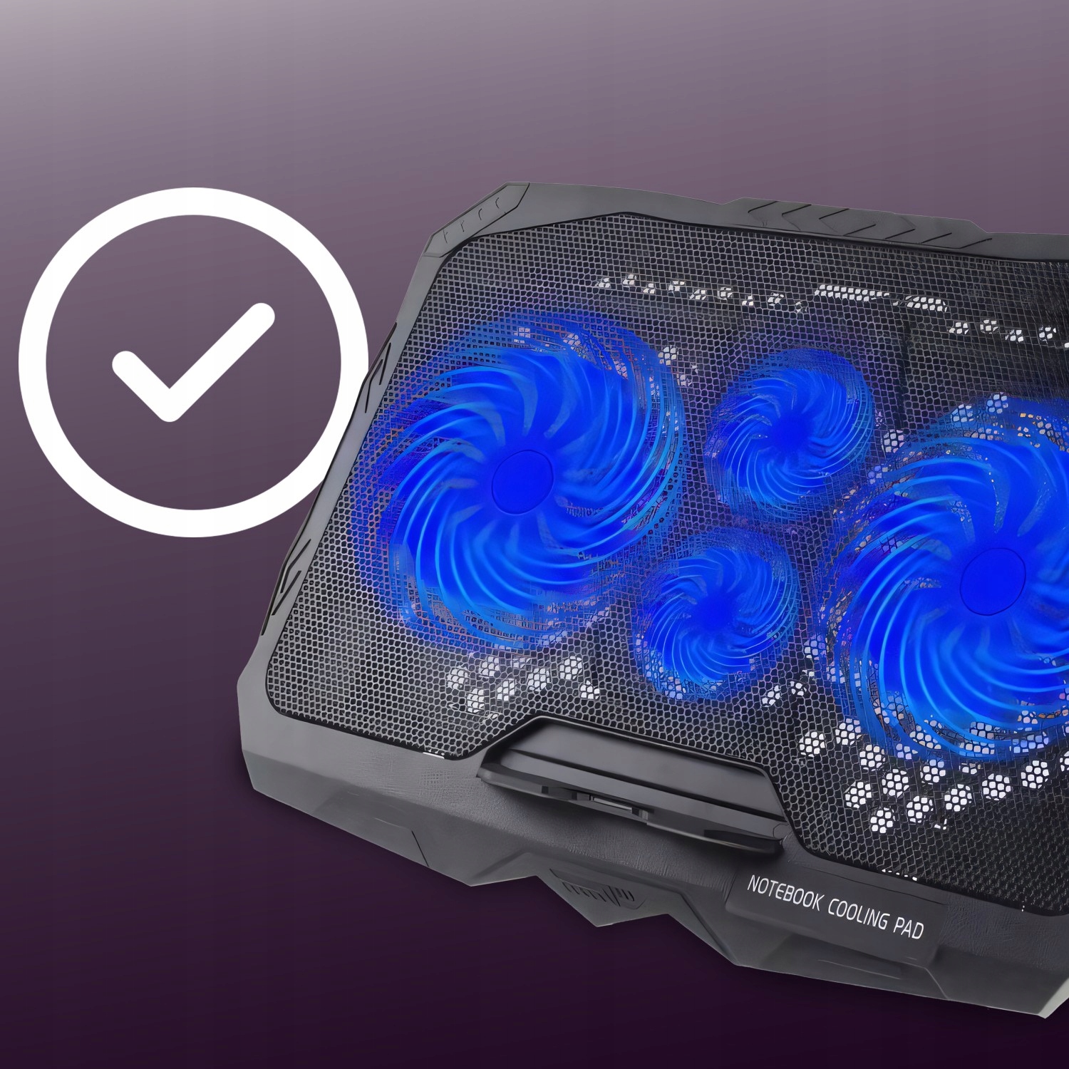 Охолоджуюча підставка оснащена чотирма ефективними вентиляторами, , які ефективно зливають тепло, захищаючи ноутбук від перегріву навіть під час інтенсивних завдань або тривалих ігрових сеансів.