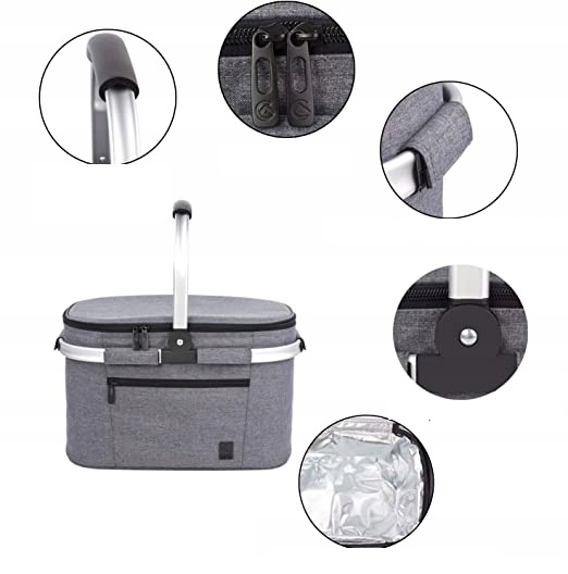 Висока якість, повністю утеплений магазин з термічно герметичним, герметична підкладка, що полегшує очищення: закриття блискавки допомагає зберегти тепло або холодну їжу. Рамка та підкладені ручки. Він складається плоскою, щоб заощадити місце для зберігання.