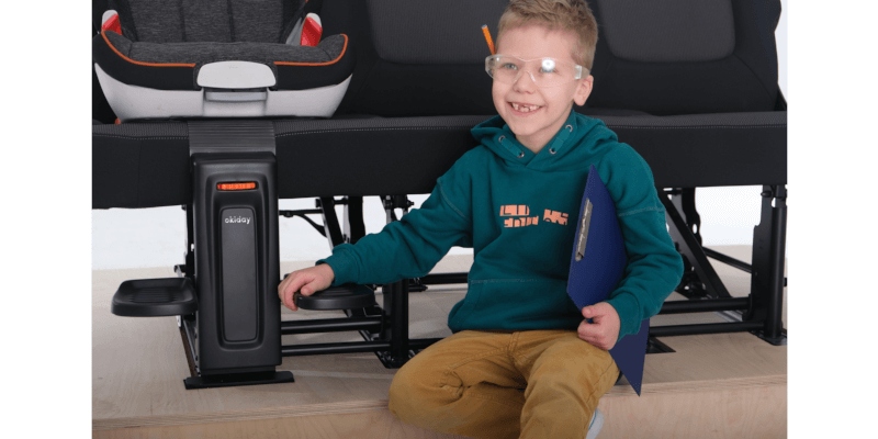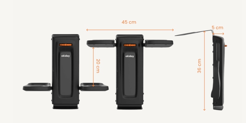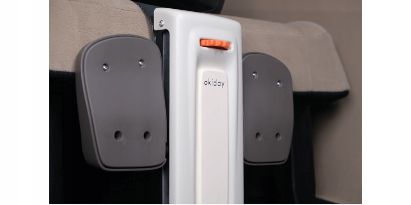 Okiday — це підставка для ніг, призначена для дітей, які подорожують у сидіннях, спрямованих вперед. Завдяки цьому малюк може зручно розташувати ніжки, тим самим усуваючи неприємні наслідки звисання ніжок. Ви отримуєте безцінний спокій, а ваша дитина отримує ергономічне і, головне, абсолютно правильне положення під час кожної поїздки. Підніжку можна встановити на більшість автомобілів, представлених на ринку, і вона працює майже з будь-яким автомобільним сидінням, якщо воно не оснащене опорною ніжкою.
