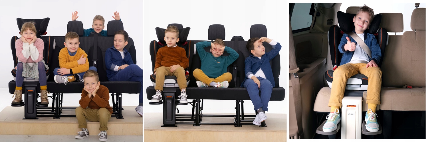 Підніжка Okiday була створеназ думкою про дітей віком від 5 до 12 років, має механізм, що дозволяє регулювати висоту платформ для ніг. Просте встановлення в автомобілі та сумісність з будь-яким автомобілем із системою Isofix доводять універсальність цього практичного аксесуара.