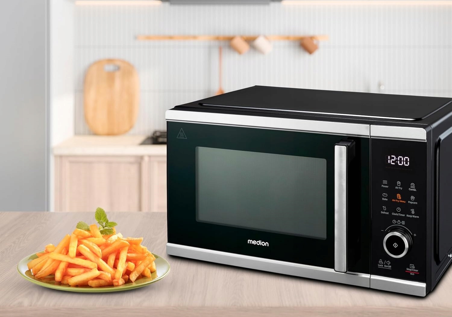 Уявіть собі: ви переїжджаєте в нову квартиру, а на вашій кухні не вистачає місця для всієї кухонної техніки. Але вам захочеться мікрохвильова піч і фритюрниця також буде непоганою. З цим універсальним пристроєм від MEDION вам більше не доведеться приймати рішення! Багатофункціональне чудо мікрохвильової печі поєднує концентровану потужність 900 Вт мікрохвиль із потужністю 1500 Вт гарячого повітря та потужністю фритюрниці. Загалом, цей повсякденний герой пропонує четверту функцію, яка робить вашу їжу ще хрусткішою — і майже без масла. Компактна кухонна техніка має 9 автоматичних програм, завдяки яким ви з легкістю зможете приготувати найсмачніші страви для себе та своєї родини. Багаті аксесуари, такі як форми для випікання, поворотні столики тощо, допоможуть вам у всіх ваших кулінарних проектах! Завдяки об’єму 25 літрів у цього помічника вистачить місця, щоб нагодувати навіть найголодніших гостей.