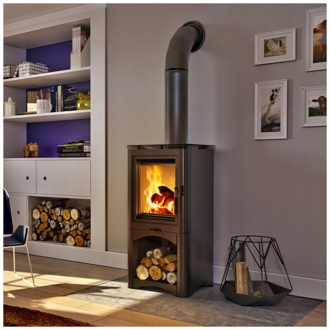 Трьохкамерна система подачі повітря в камеру згоряння: первинне повітря - подається під колосникову решітку; вторинне повітря подається через отвори в задній стінці. Крім того, у вставці використовується система чистого скла (повітряна завіса).