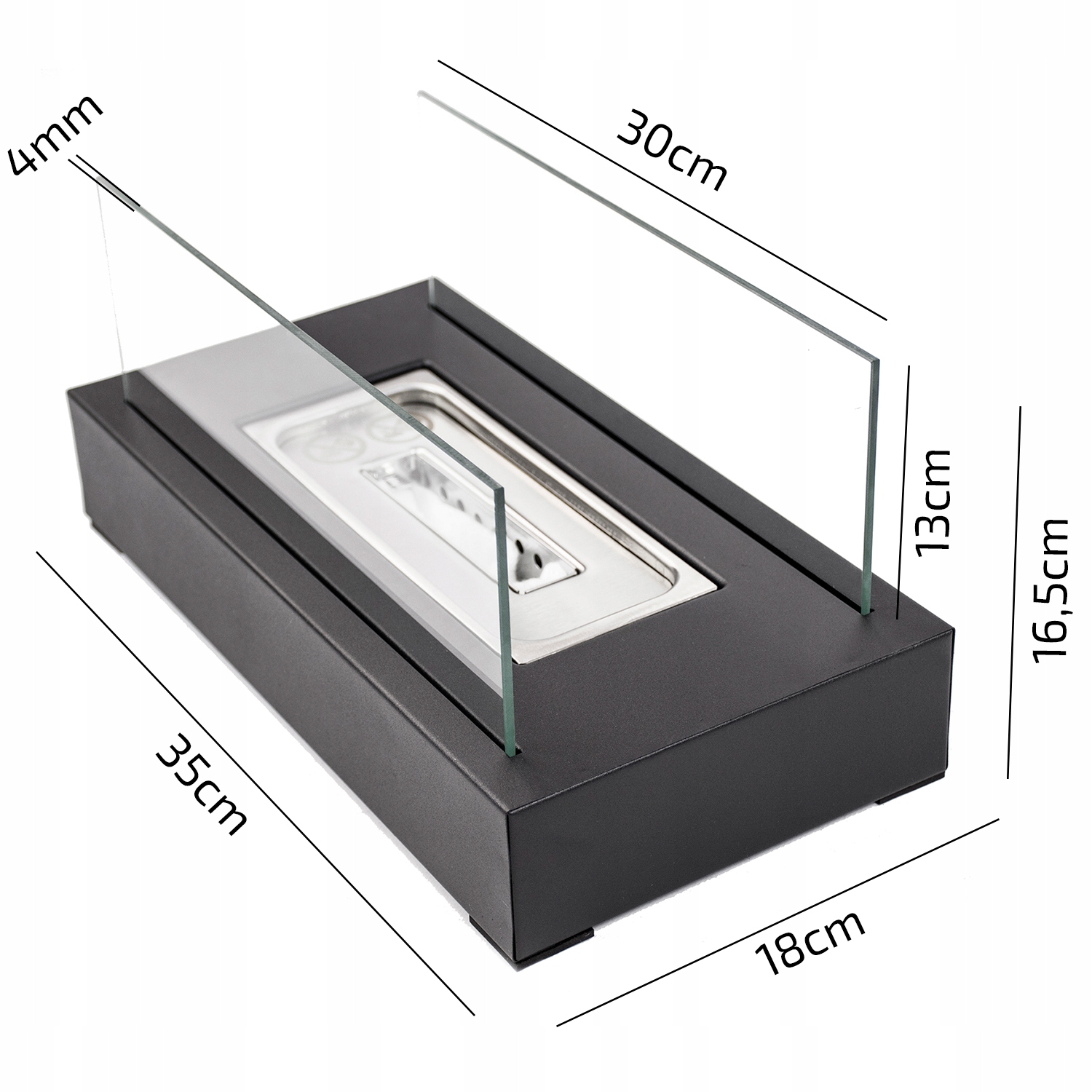 - розміри біокаміна: 35 см x 18 см x 16,5 см