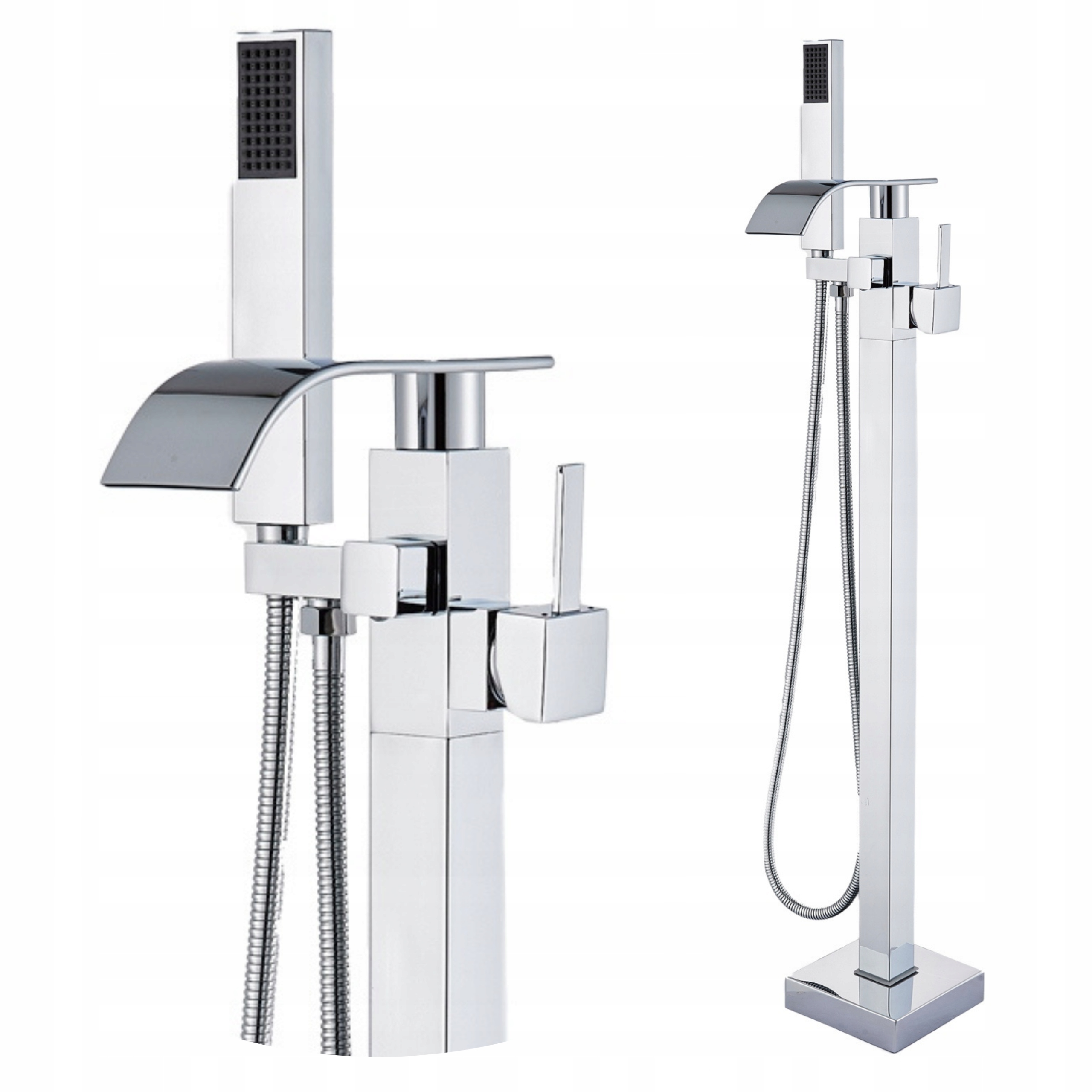 Окремо стоячий змішувач для ванни, водоспадний душ, сріблястий вилив для підлоги