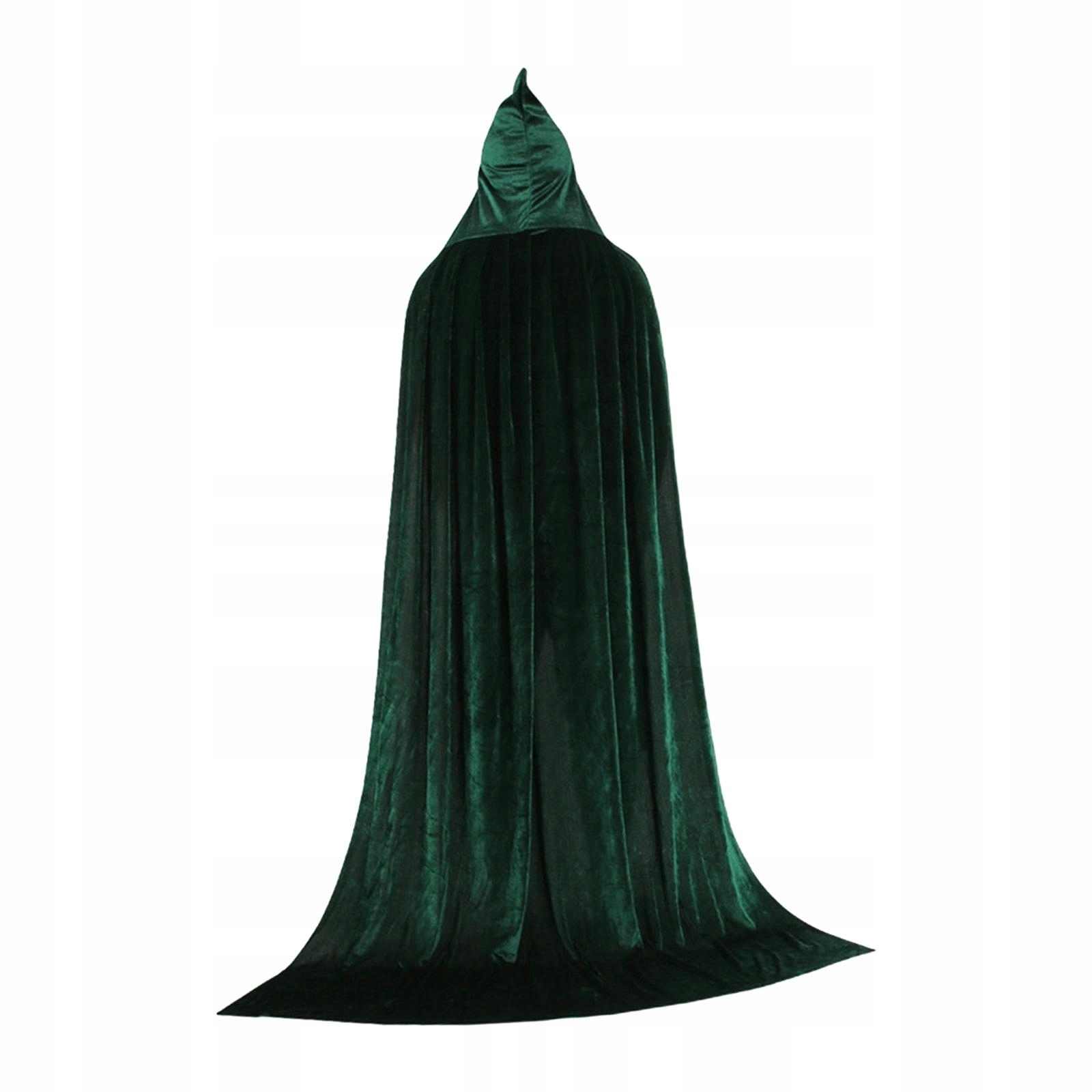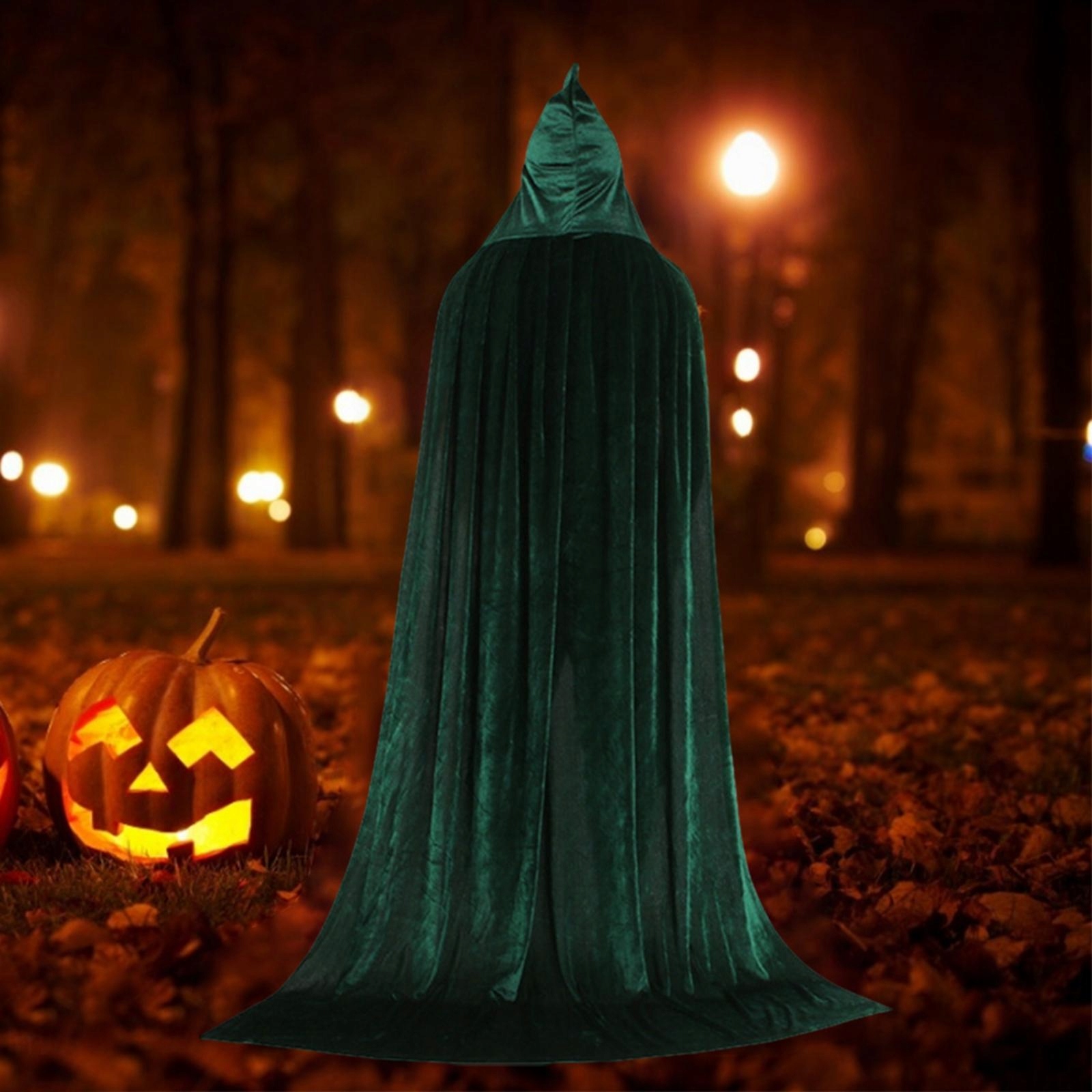 Оксамитовий плащ з капюшоном на Хеллоуїн, суцільний аксесуар, 150 см, темно-зелений