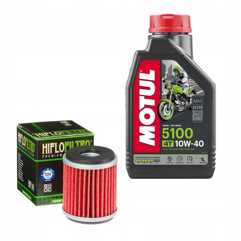 Olej silnikowy Motul 5100 4T 1 l 10W-40 + Hiflofiltro HF141 filtr oleju
