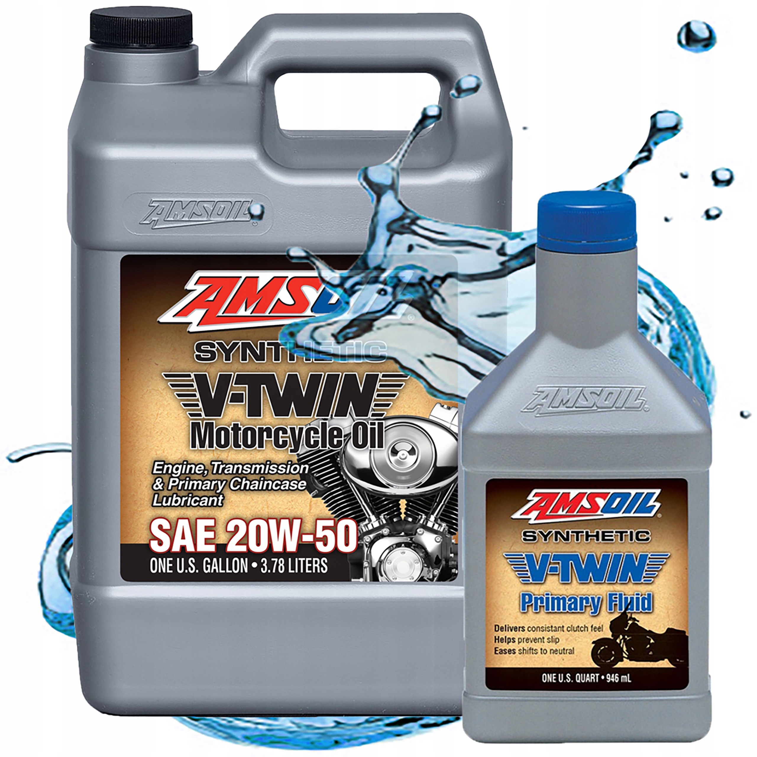 ✅Пропозиція включає набір для заміни масла для Harley = AMSOIL 20W-50 V-TWIN Synthetic Motorcycle Oil MCV1G моторне масло + Primary Fluid MVPQT масло для зчеплення