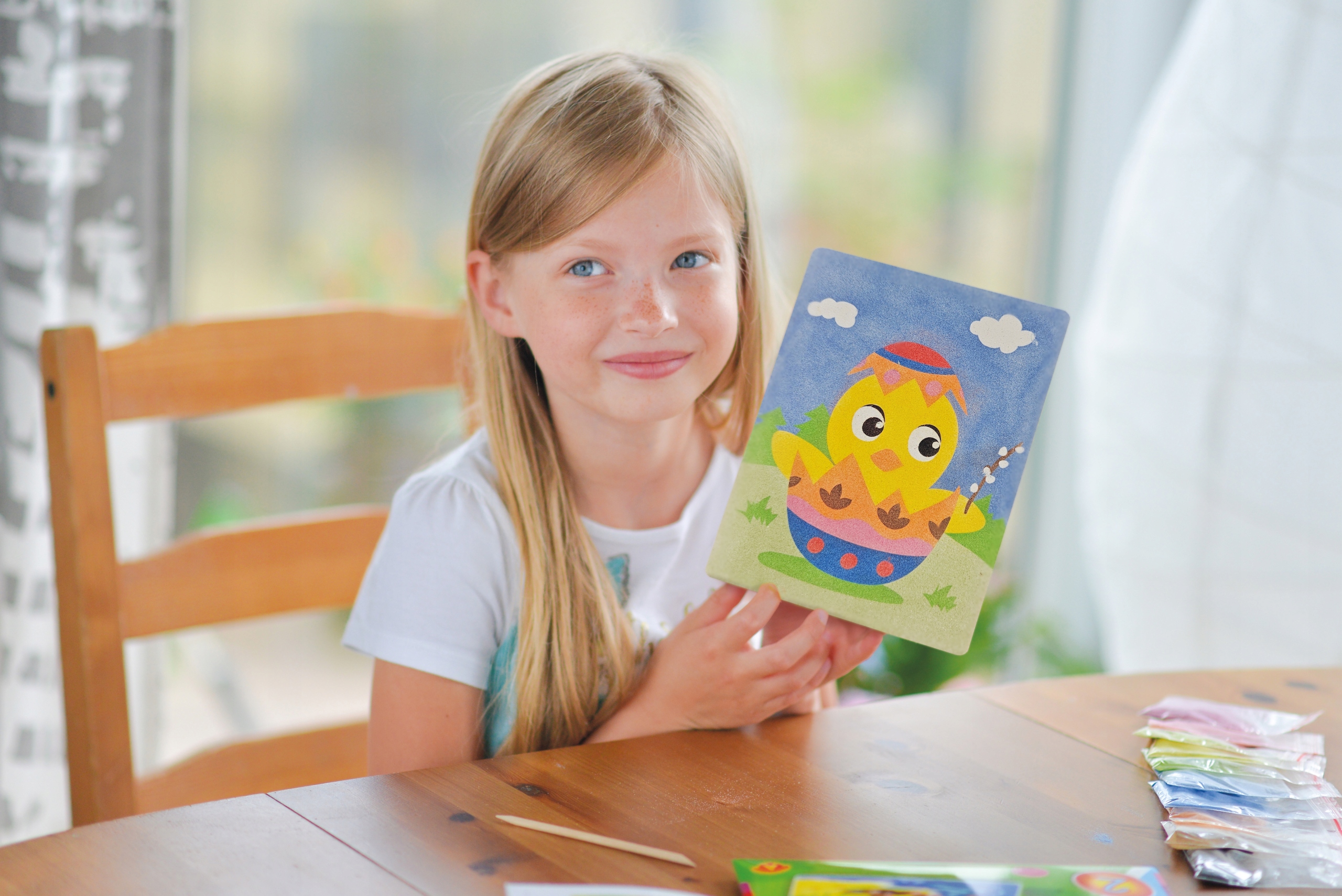 Творча забава, повна кольорів! Тепер ваша дитина може створити дві різдвяні фотографії - чарівне зображення великодньої курки та зайчика, використовуючи 22 кольорові піски. Це подвійна доза творчості, яка розвиває уяву та вручну навички надзвичайно захоплюючим способом. Просто розкрийте наступні фрагменти самодостойних шаблонів і посипте барвистим піском - відповідно до візерунка або відповідно до вашої власної уяви. Це весело, що дає дитині відчуття задоволення і дозволяє йому насолоджуватися наслідками своєї роботи. Це також допомагає в концентрації, вчить терпіння та підтримує розвиток сенсорної інтеграції. Це не тільки велика забава, але й цінна навчальна діяльність. Продукт був упакований в екологічну упаковку, споживає менше паперу. Піщані картини - Пасхальна курка та зайчик - це ідеальний спосіб провести свій великодній час.