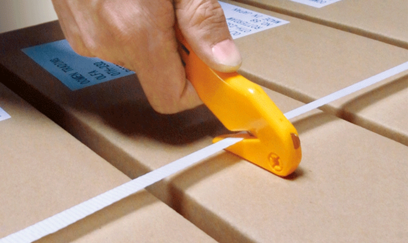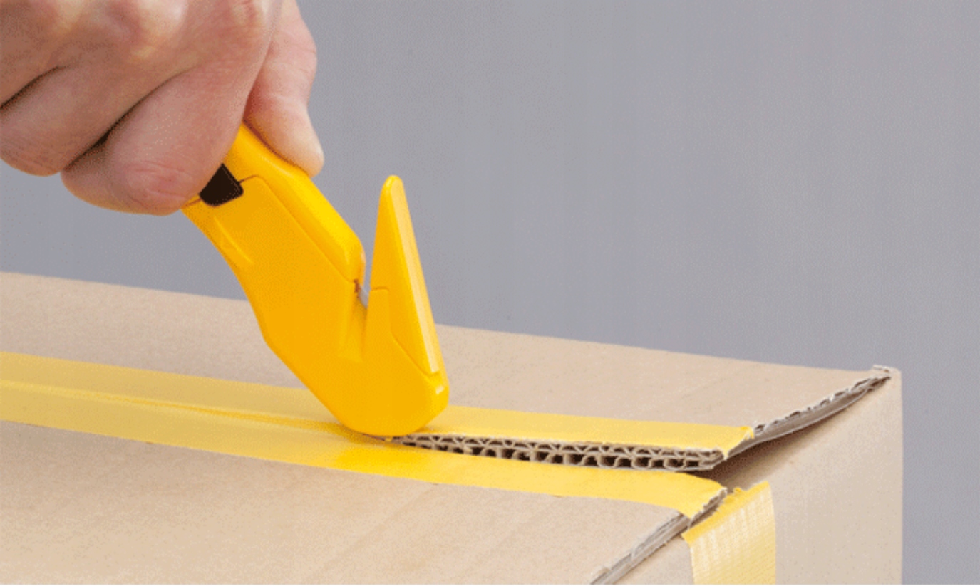 бування з нержавіючої сталі, закруглене випинання на кінчику ножа легко перетинає самоклеючі упаковки без ризику пошкодження вмісту упаковки.