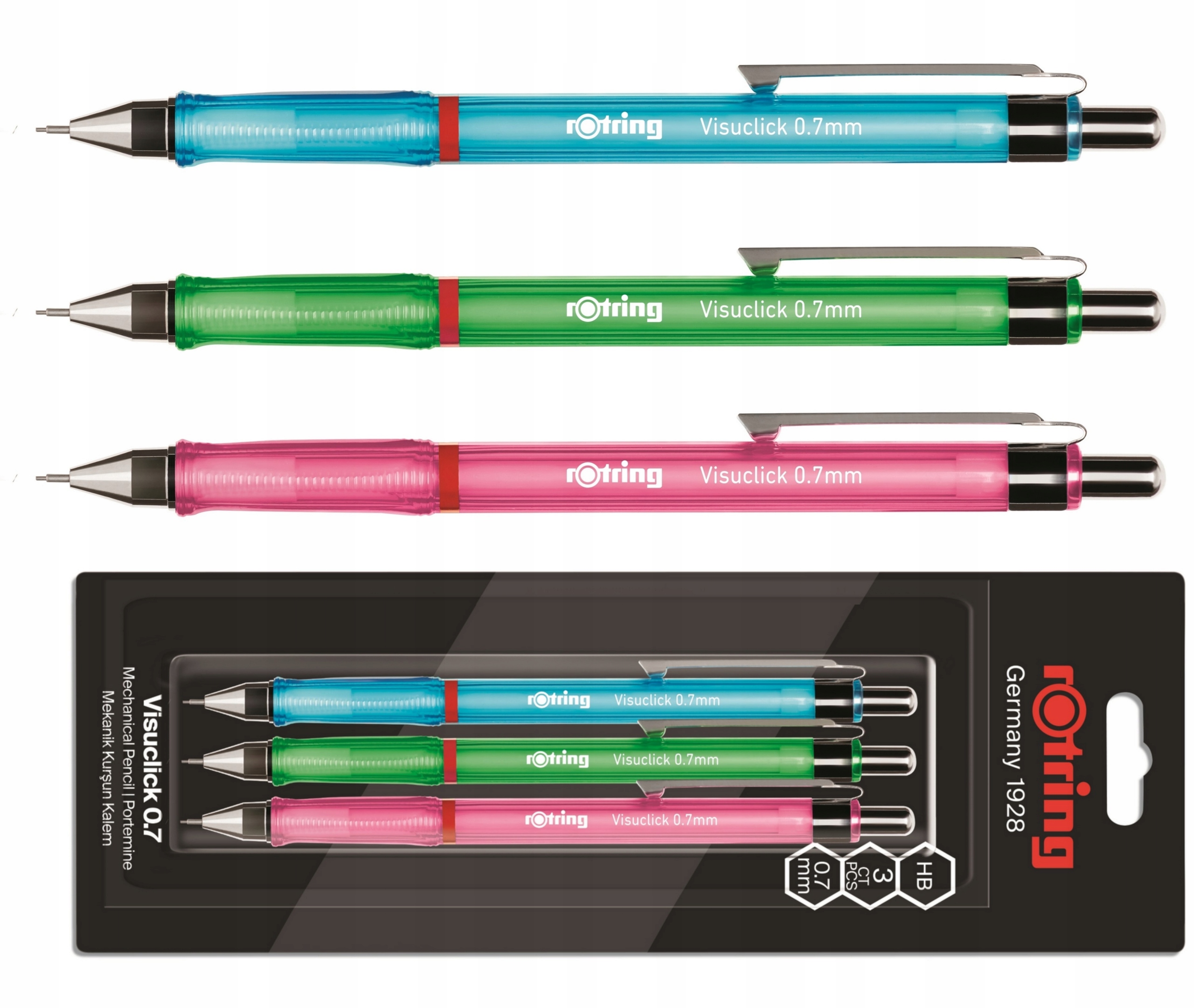 ДВА МЕХАНІЧНІ ОЛІВЦІ VISUCLICK 0,70 ММ - 1 РОЖЕВИЙ + 1 СИНІЙ + 1 ЗЕЛЕНИЙ