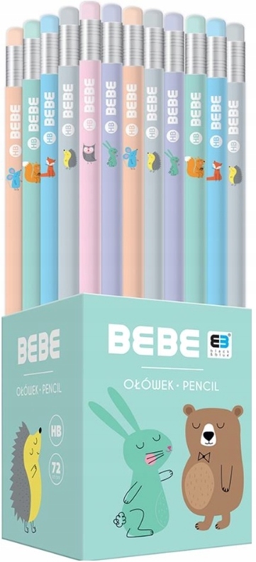 Круглий олівець HB з гумкою BEBE ANIMALS