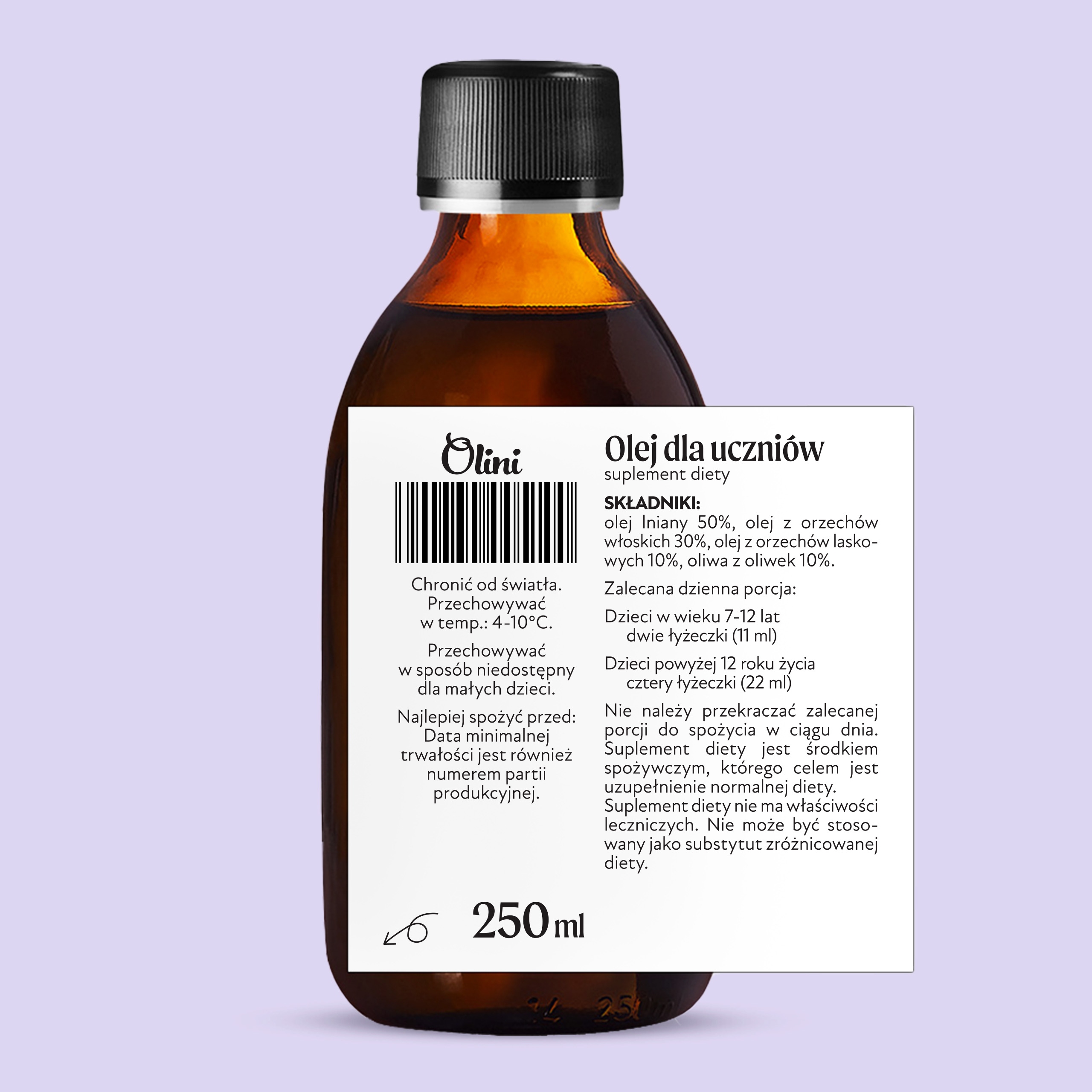 ✅ Студентська олія – це те, що ви шукаєте! Суміш, яка містить лише чотири рослинні олії: лляне, волоський горіх і фундук, а також оливкову олію, розробили вчені Медичного університету Лодзі. Його компоненти підтримують пам’ять і концентрацію уваги учнів віком від 7 до 15 років.