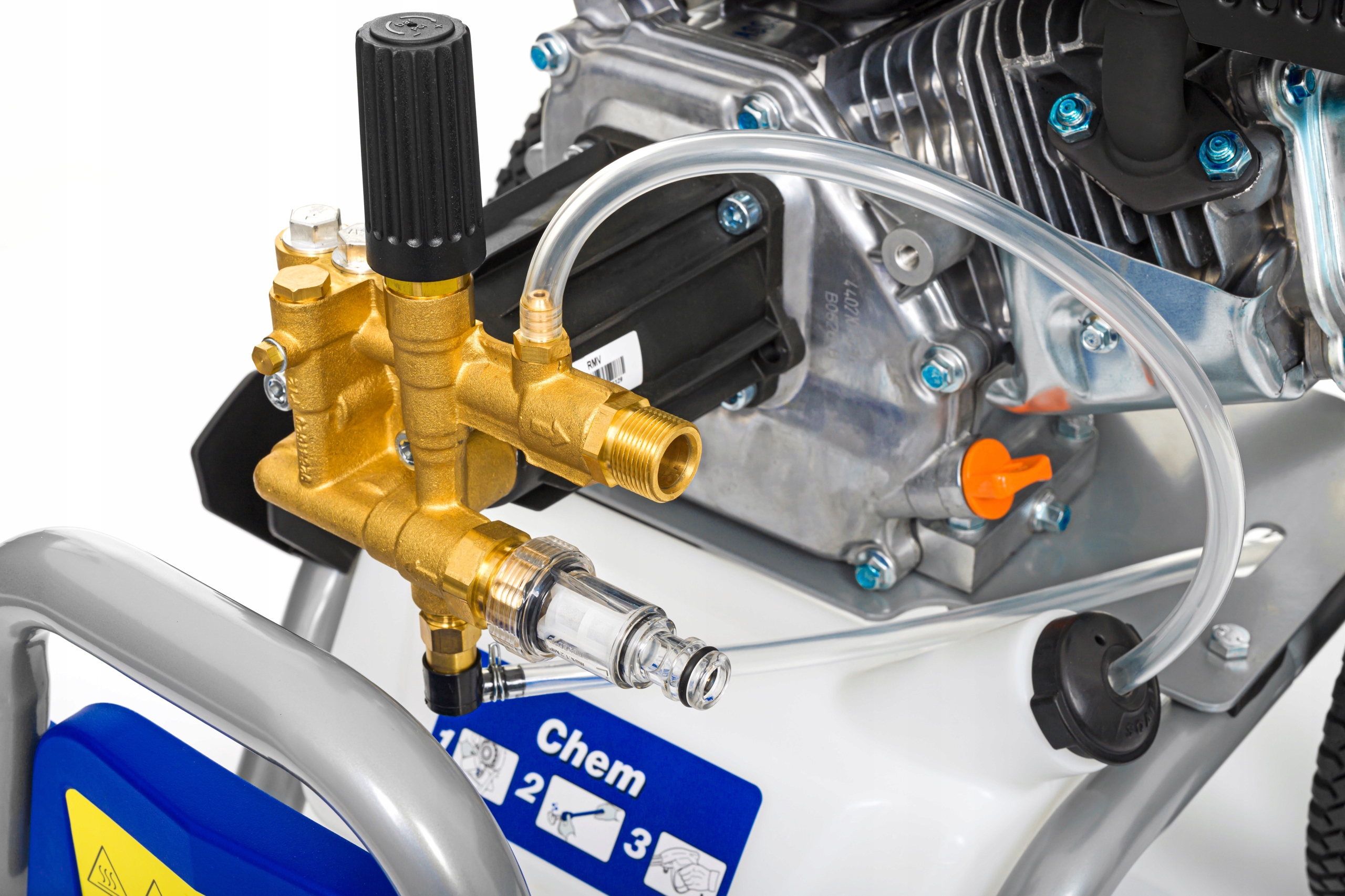 Конструкція адаптована до насоса. Пральна машина використовує двигун внутрішнього згоряння потужністю 7 кінських сил. Він приводить в дію насос, створюючи до 220 бар робочого тиску, яким можна легко керувати за допомогою клапана тиску на головці.