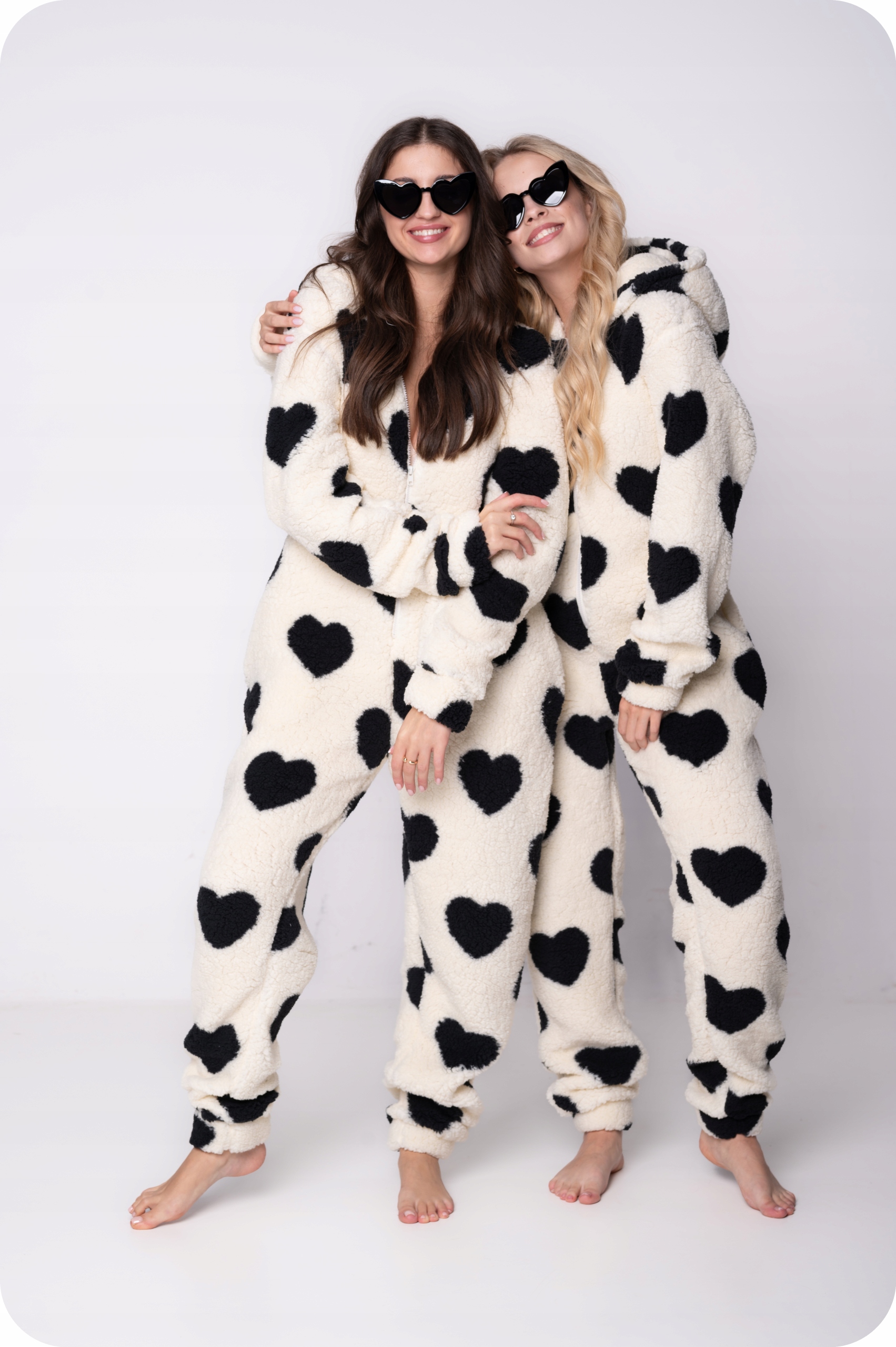 Піжамний комбінезон ONESIE Kigurumi для дорослих - білий з чорними сердечками ⭐⭐⭐⭐⭐