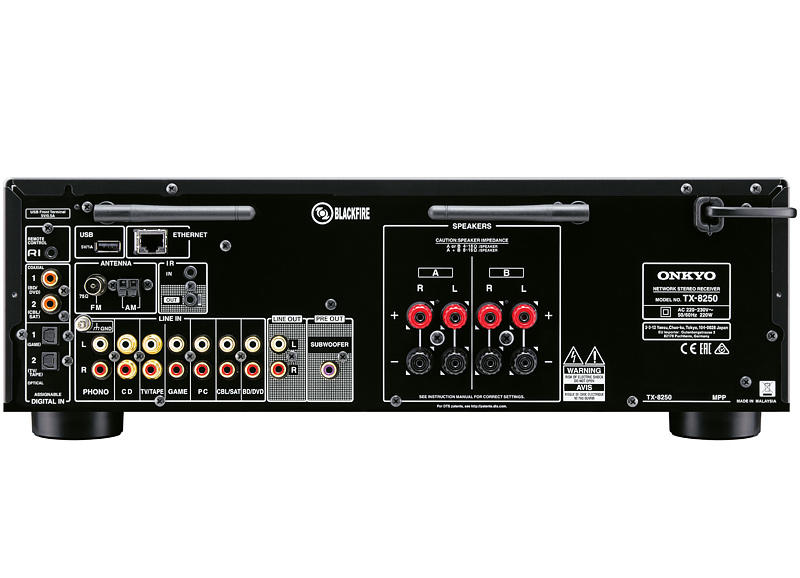 TX-8250 з успіхом можна використовувати в якості домашнього розважального центру. Він має повний набір (7) аналогових входів, включаючи вхід фонограми, цифрові входи, порти USB (живлення та аудіофайли), а також аналогові виходи: лінійний вихід і для зовнішнього сабвуфера. Дві пари суцільних гвинтових гнізд для гучномовців (A/B/AiB - вибір з пульта дистанційного керування або на передній панелі) дозволяють вільно розширювати систему. На задній стінці розташовані додаткові розетки: Ethernet, Ri та IR (in-out).