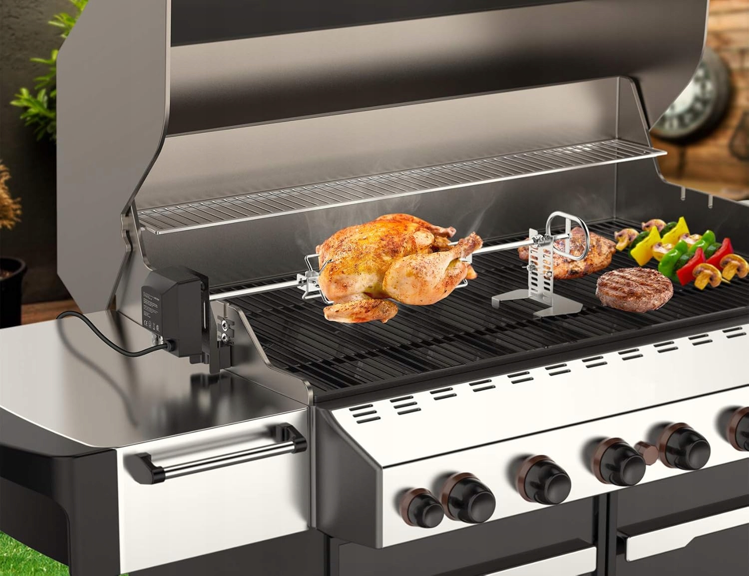 ✔ стабільний і тихий оборот , що живиться з розетки - не потрібно акумулятора , постійна потужність протягом усього процесу грилю.