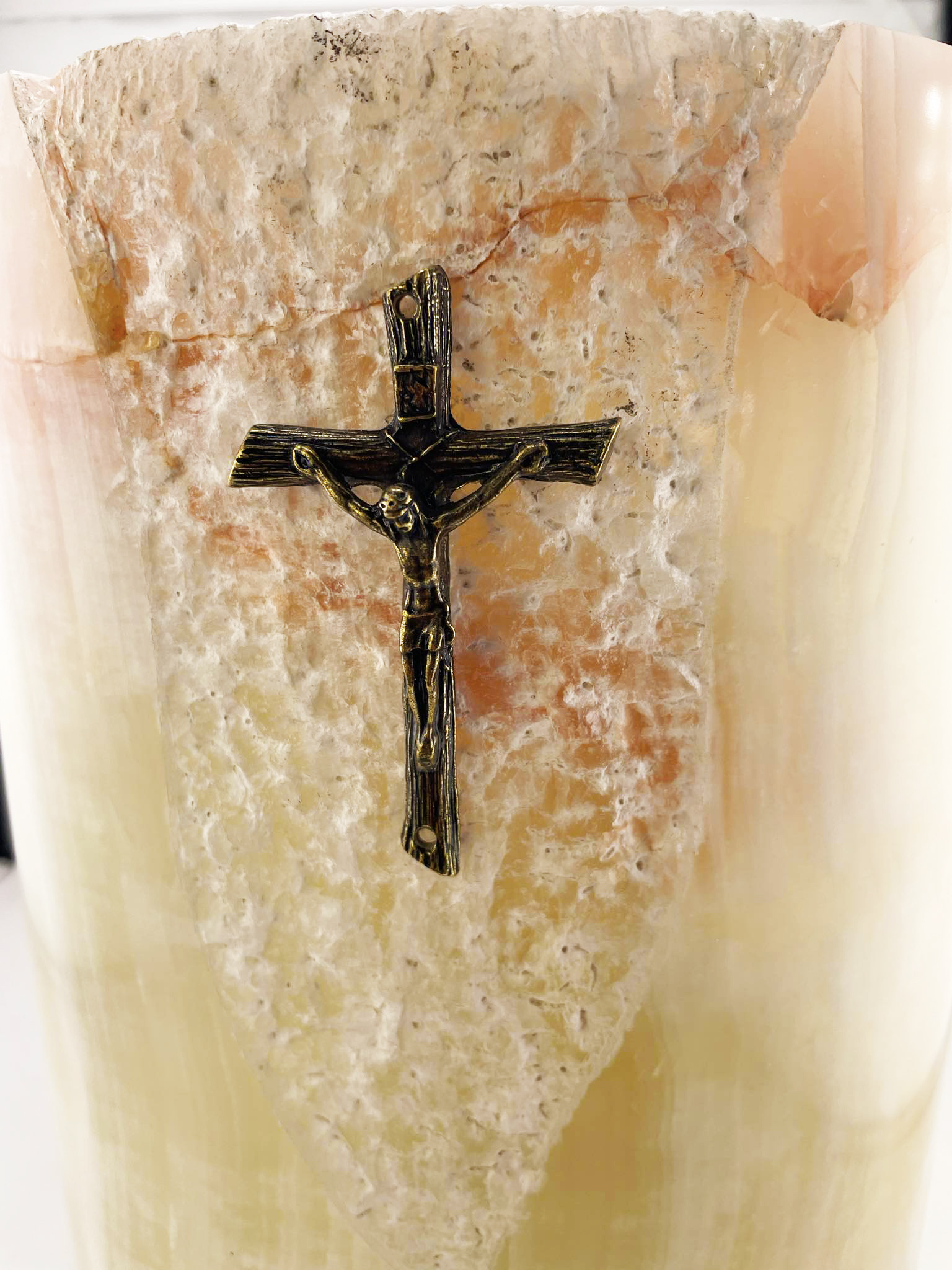 Відшліфована вручну до високого глянцю, прикрашена позолоченим хрестом у верхній частині та позолоченими ручками. Кам’яна урна надзвичайно міцна і водночас дуже елегантна.