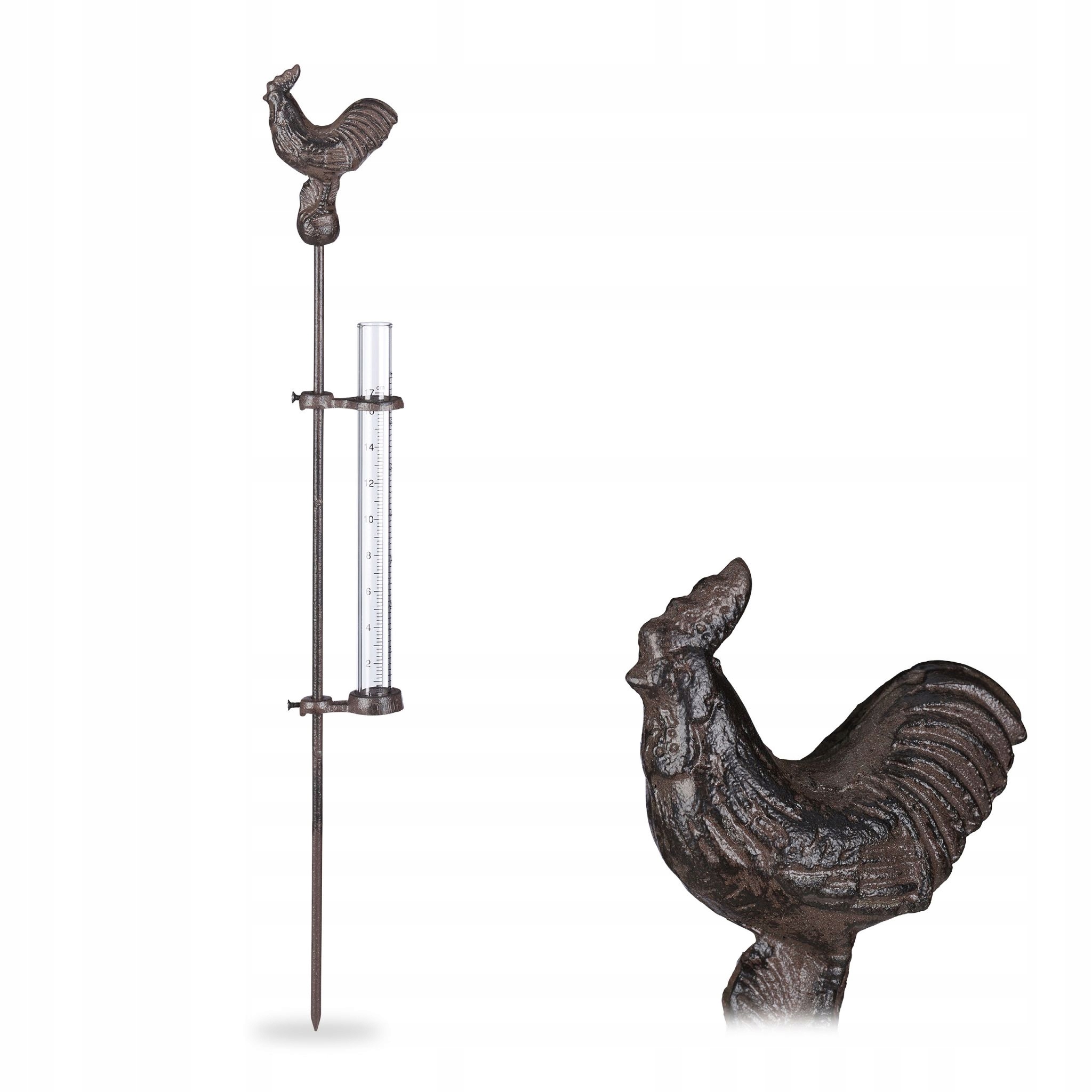 Цей незвичайний опадомір можна використовувати як прикрасу саду чи балкона. Декоративну садову пробку можна легко встромити в землю на клумбі завдяки шипу. Незалежно від того, чи встановлено лічильник води на балконі чи в саду, опадомір ностальгічного вигляду вражає своїм стилем і виділяється краном, що відкручується. Морозостійкий опадомір - деталі - Загальні розміри (В x Ш x Д): прибл. 54 x 7 x 2 см - Внутрішні розміри скла: прибл. В x Ø: прибл. 21 x 1,5 см - Місткість склянки: прибл. Водомір 100 мл у стилі ретро - Показання вимірювання: 17 см або 7 дюймів - 1 см рівня води відповідає прибл. 10 л/м² дощу - 1 дюйм заповнення відповідає прибл. 25 л/м² дощу - Матеріал: скло, чавун - Загальна вага: прибл. 520 г - Колір: ефект іржі - Набір з 4 предметів Дощомір для саду - Незвичайна прикраса для саду - Ретро-стиль - Декоративний дизайн крана - Щоб спорожнити, вийміть склянку з тримача - Стійка суміш матеріалів, стійка до атмосферних впливів - Встромляється в землю на балконі чи в саду Комплект поставки - 4x дощомір - Декоративні елементи не входять до комплекту поставки