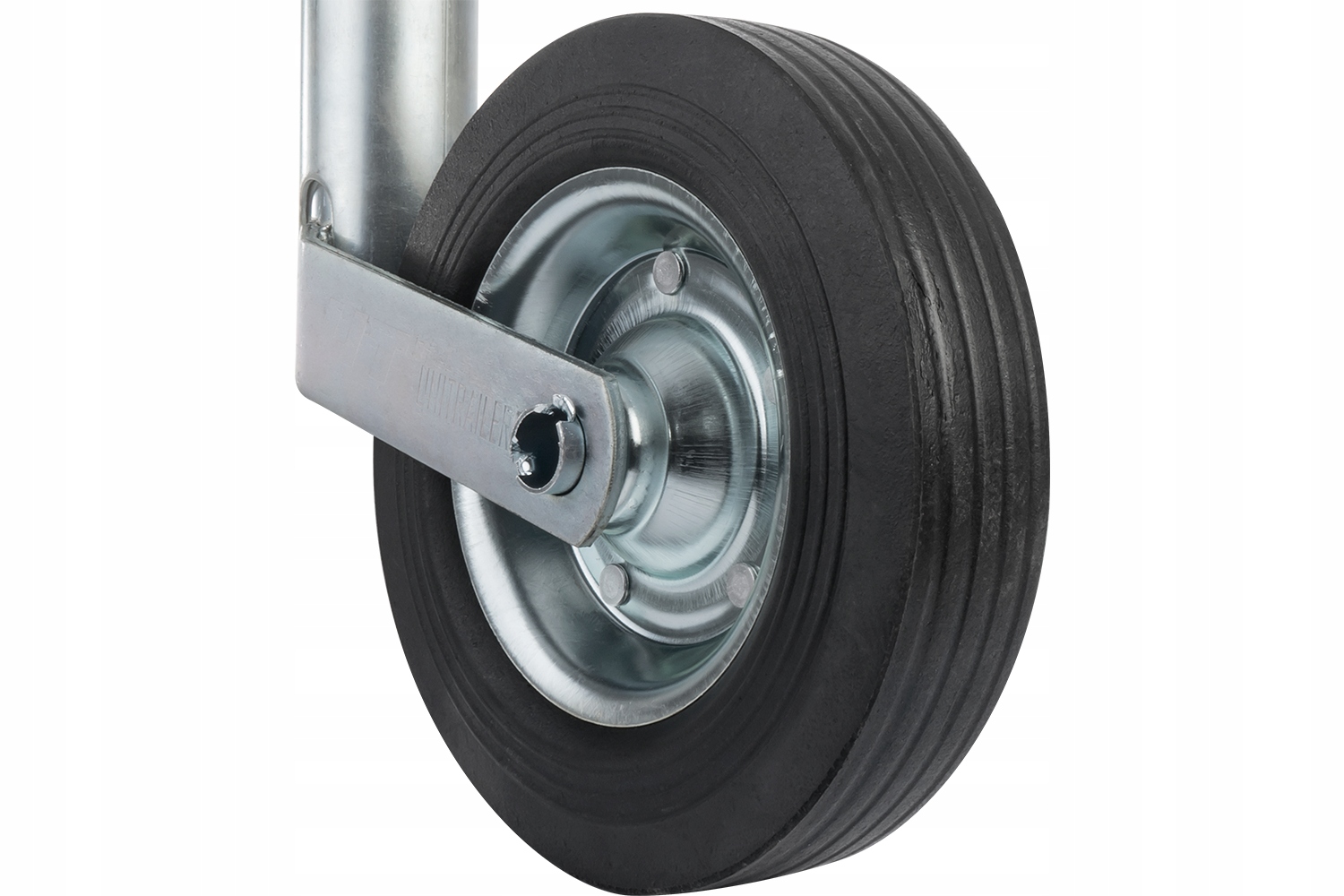 Колесо опорне сталеве для причепа Unitrailer з діаметром труби 48 мм. Полегшує прикріплення та знімання причепа з гака та маневрування ним