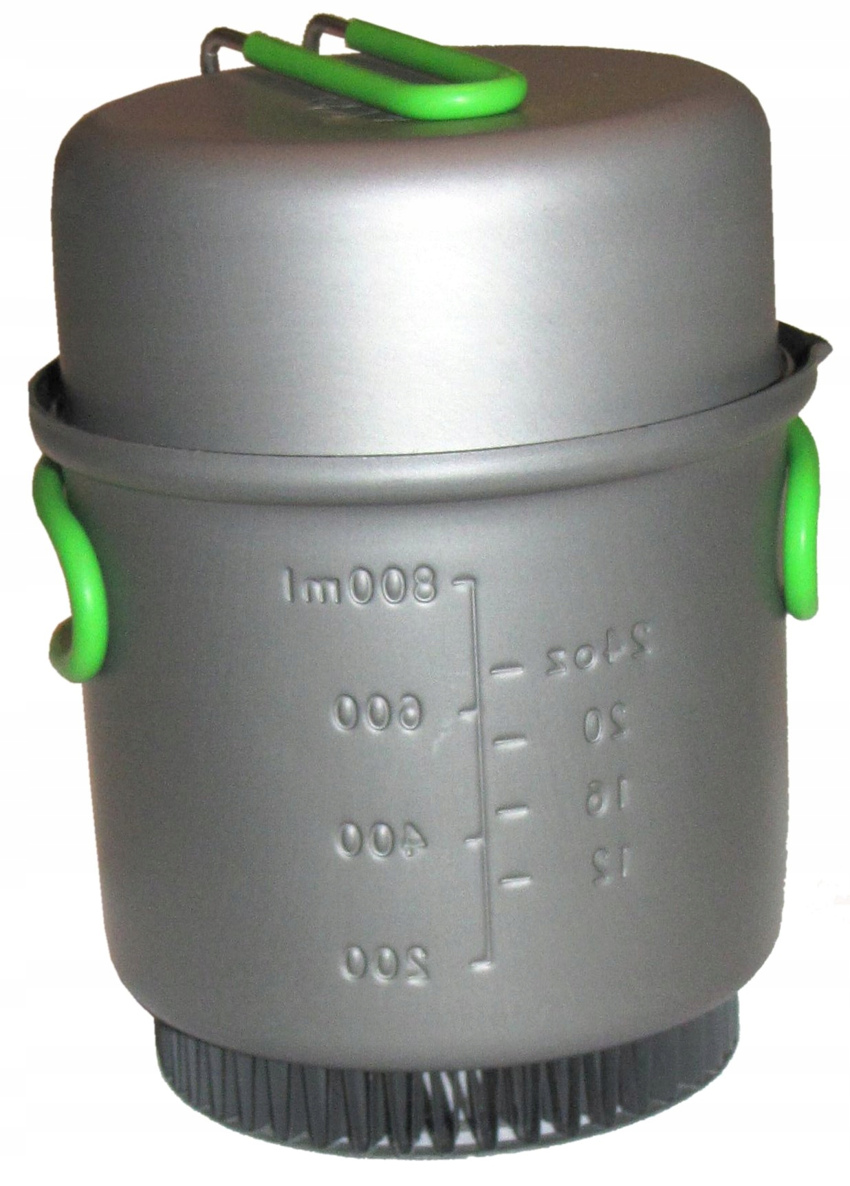 Виготовлений з високоякісного анодованого алюмінієвого сплаву, вкритий антипригарним покриттям зсередини. Розмір і вага є перевагою під час нашої подорожі або експедиції, коли кожен грам і сантиметр на рахунку. Він характеризується дуже високою стійкістю до корозії та найвищим співвідношенням механічної міцності до ваги. Він також більш ніж вдвічі стійкіший до деформації, ніж популярні сплави алюмінію або сталі. Ємності 0,95 л достатньо для кип'ятіння води в туристичних умовах на 2 особи. Завдяки своїй структурі він дозволяє заховати весь комплект, що значно економить місце у вашому туристичному багажі. Ручкафункціонує під час транспортування, щоб захистити набір, а силіконова кришка захищає нас від опіків. Ми можемо використовувати його як на газових, так і на паливних пальниках. Перевагою їдальні є можливість зберігання маленького газового балончика 97/100 або 220 грамів, шпорки, запальнички та маленької конфорки, напр. CRUX LITE. Має постійну шкалу від 0 до 800 мл. Фігурний носик полегшить наливання води в чашку. Він має радіатор, завдяки якому тепло рівномірно розподіляється по дну каструлі і менше проблем з пригоранням їжі. Ця система економить нам паливо завдяки кращому теплообміну. Це зменшує, наприклад, кип’ятіння води для чаю на цілих 20%. Радіатор має менший діаметр, ніж аналогічні моделі інших виробників, тому підходить для більшості газових пальників. Він широкий і повинен бути ефективним. При використанні плит Optimus час нагрівання води становить трохи більше 2 хвилин.