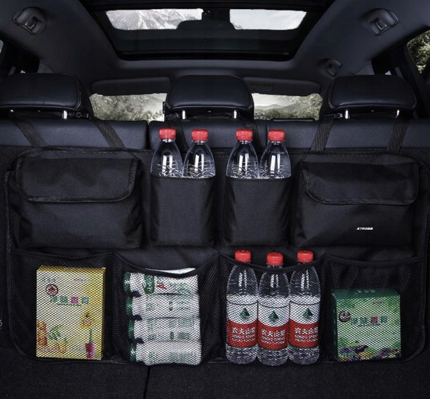 - 8 ВОДОНЕПРОХОДНИХ КИШЕНЬ РІЗНИХ РОЗМІРІВ - ви можете легко розмістити багато найнеобхідніших речей в органайзері, таких як пилосос, дроти, випрямляч, склоомивач, віник або ганчірки. Тоді всі найнеобхідніші речі будуть складені в багажник. Крім того, матеріал Oxford 600, з якого виготовлено органайзер, водонепроникний